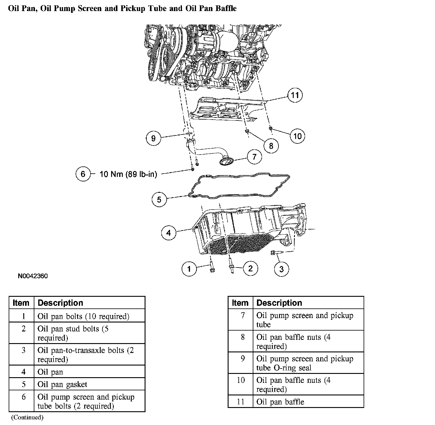 Oil Pan, Oil Pump Screen and Pickup Tube and Oil Pan Baffle: