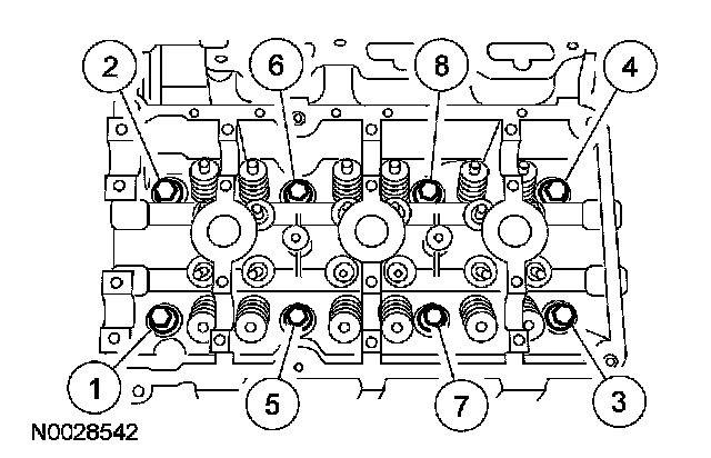 7. Loosen the 8 bolts in the sequence shown and remove the cylinder head.