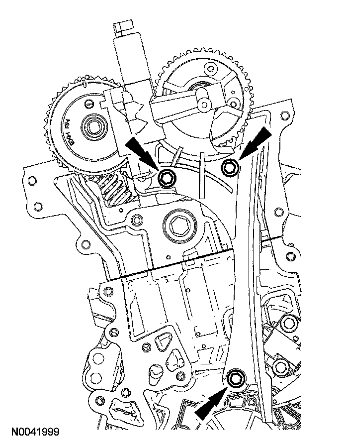 ^ Tighten the tensioner bolt to 45 Nm (33 ft. lbs.).