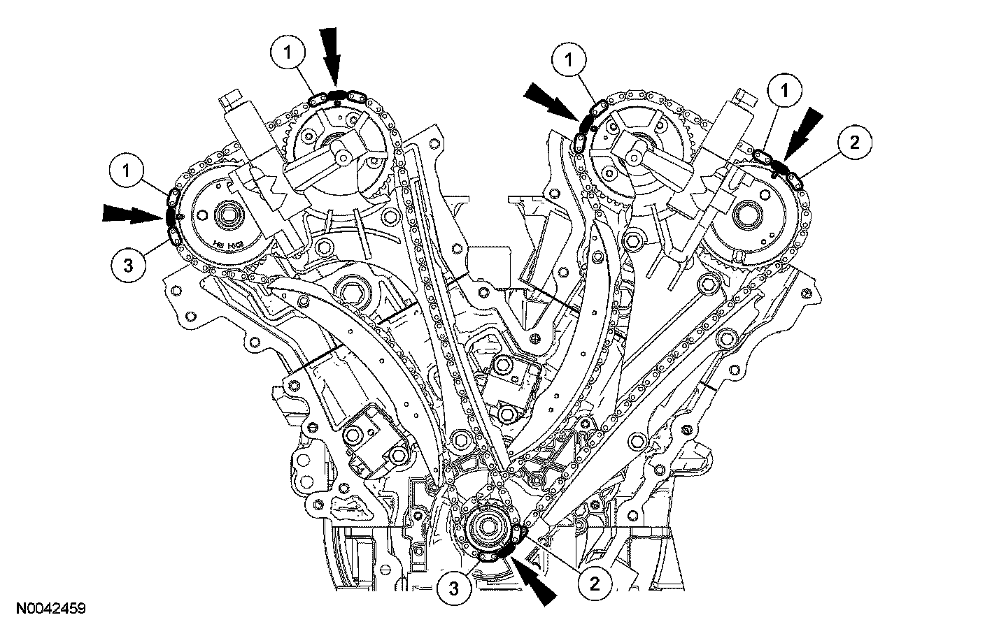 56. CAUTION: Failure to verify correct timing drive component alignment will result in severe engine damage.