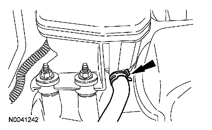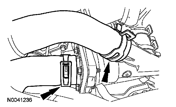 41. Disconnect the heater hose from the thermostat housing.