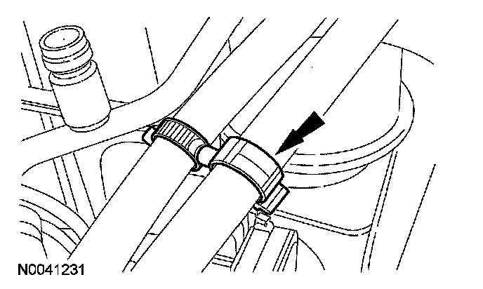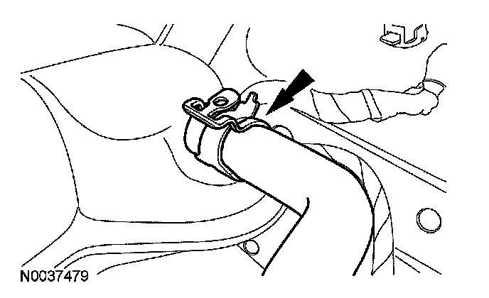 53. Detach the coolant hose retaining clip and position the coolant hose aside.