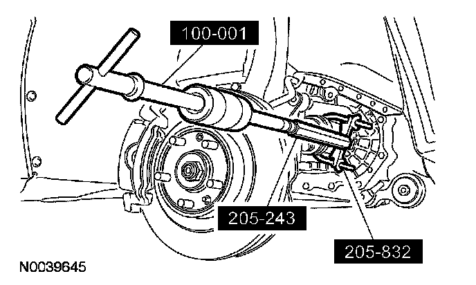 58. Using the special tools, separate the LH halfshaft from the transaxle and support the halfshaft with a length of mechanic's wire.