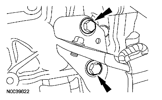 46. Remove the 3 transaxle control cable bracket bolts and position the cable aside.
