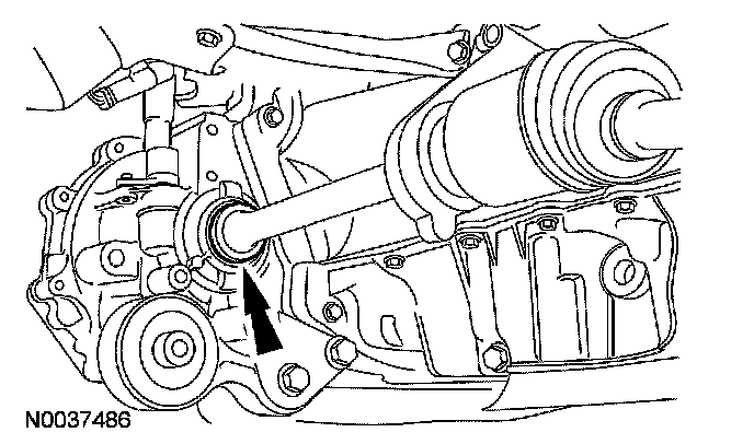 63. Separate the RH halfshaft from the transaxle and support the halfshaft with a length of mechanic's wire.