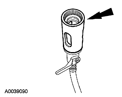 5. Install the dye/lubricant injector between the low-side service gauge port valve and the refrigerant service station or manifold gauge set.
