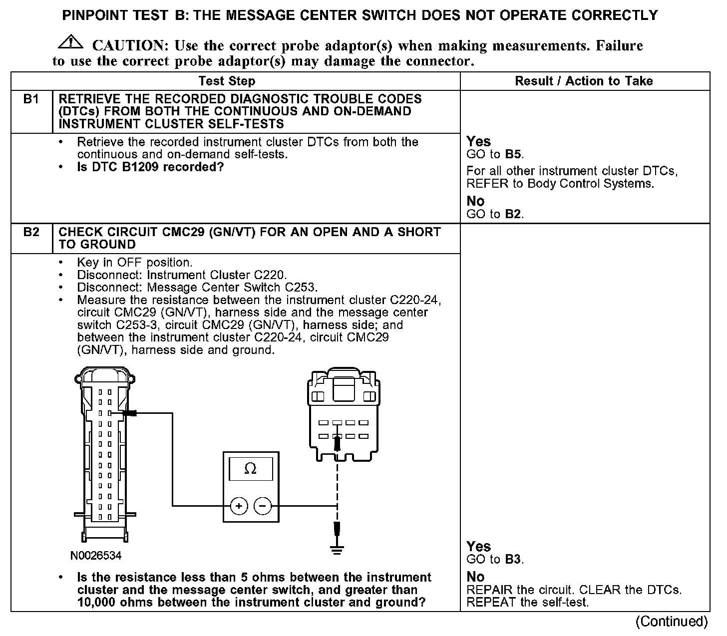 PINPOINT TEST B: THE MESSAGE CENTER SWITCH DOES NOT OPERATE CORRECTLYB1-B2: