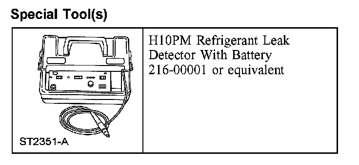 Leak test the refrigerant system using the Refrigerant Leak Detector. Follow the instructions included with the leak detector for handling and operation techniques.
