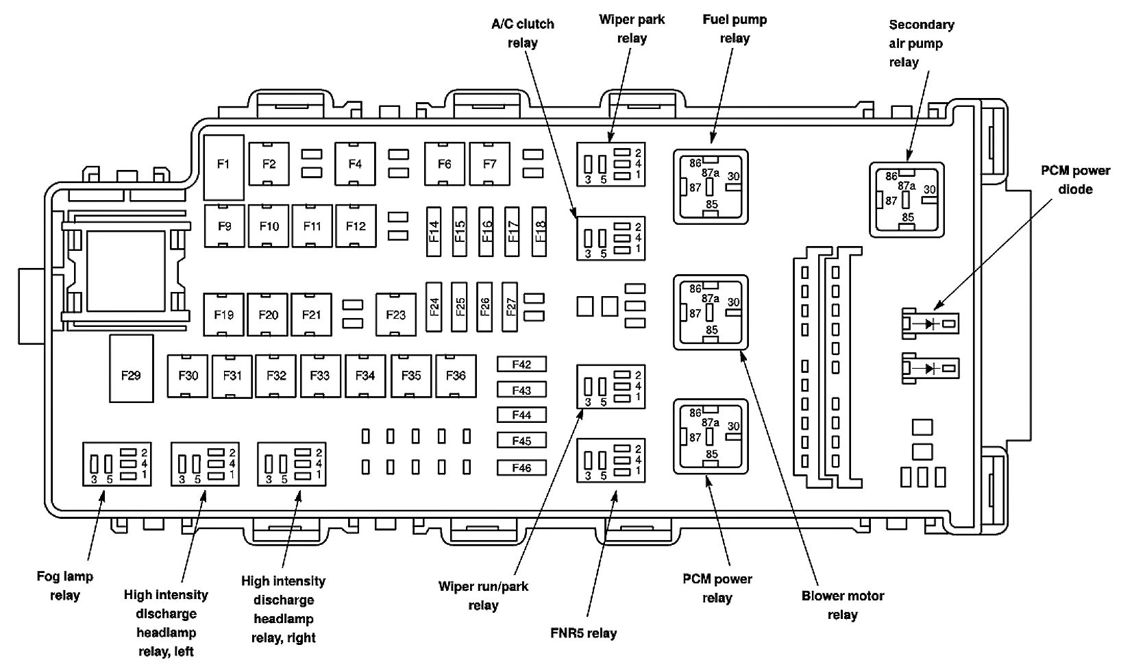 ALLDATA Editor's Note: Ford identifies this one component by 2 different names. Users have reported success comparing these images to determine Application/ID or Location of Fuses and Relays with the Power Distribution Box / Battery Junction Box (BJB).