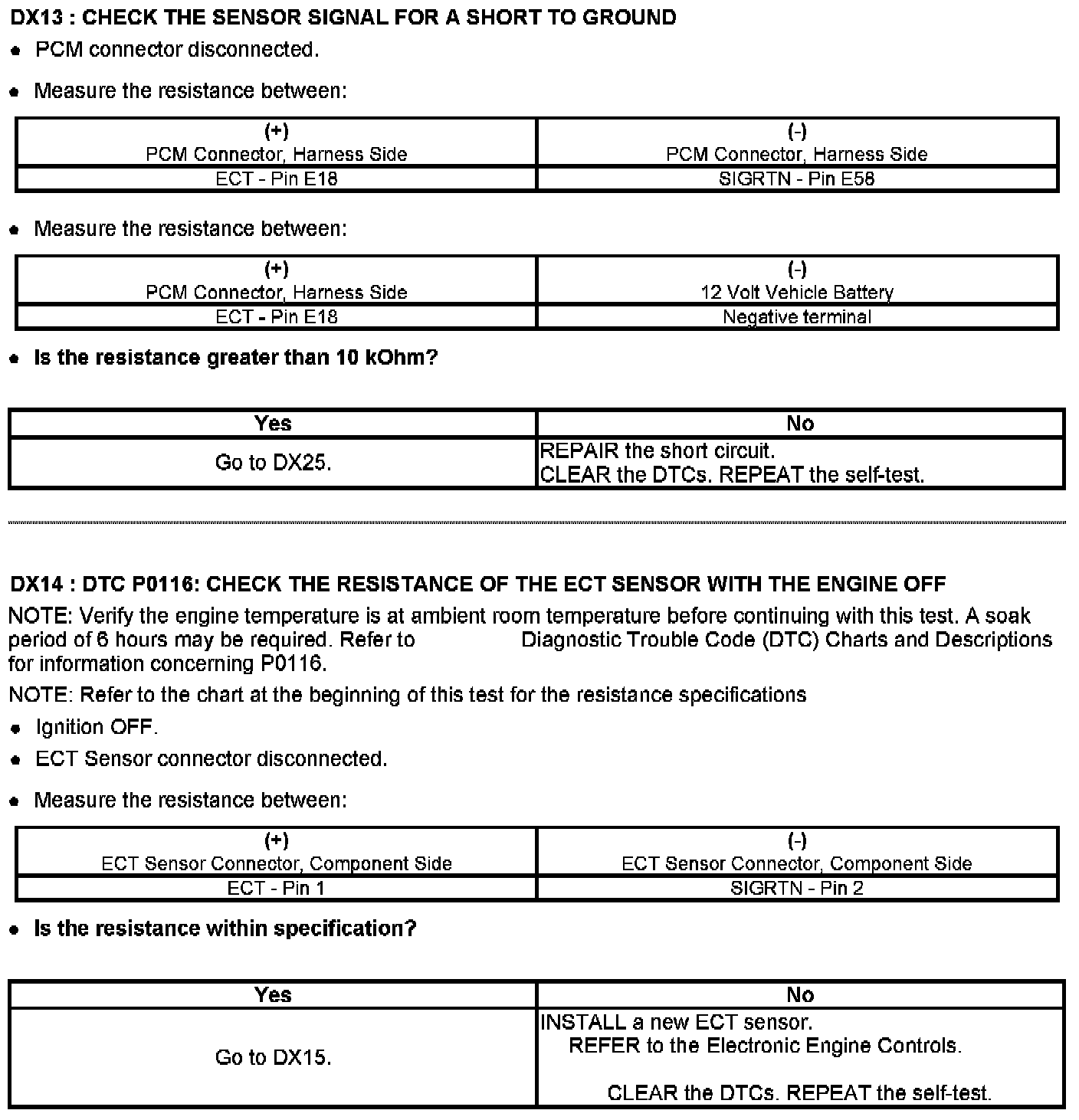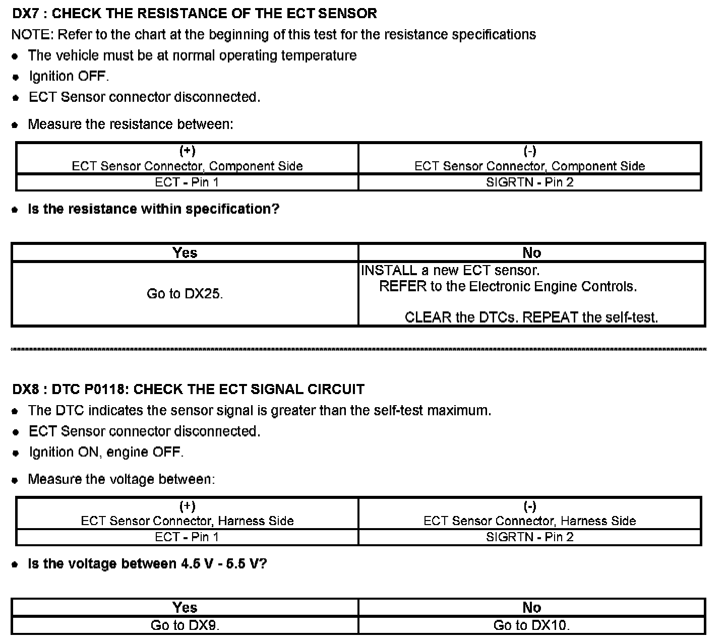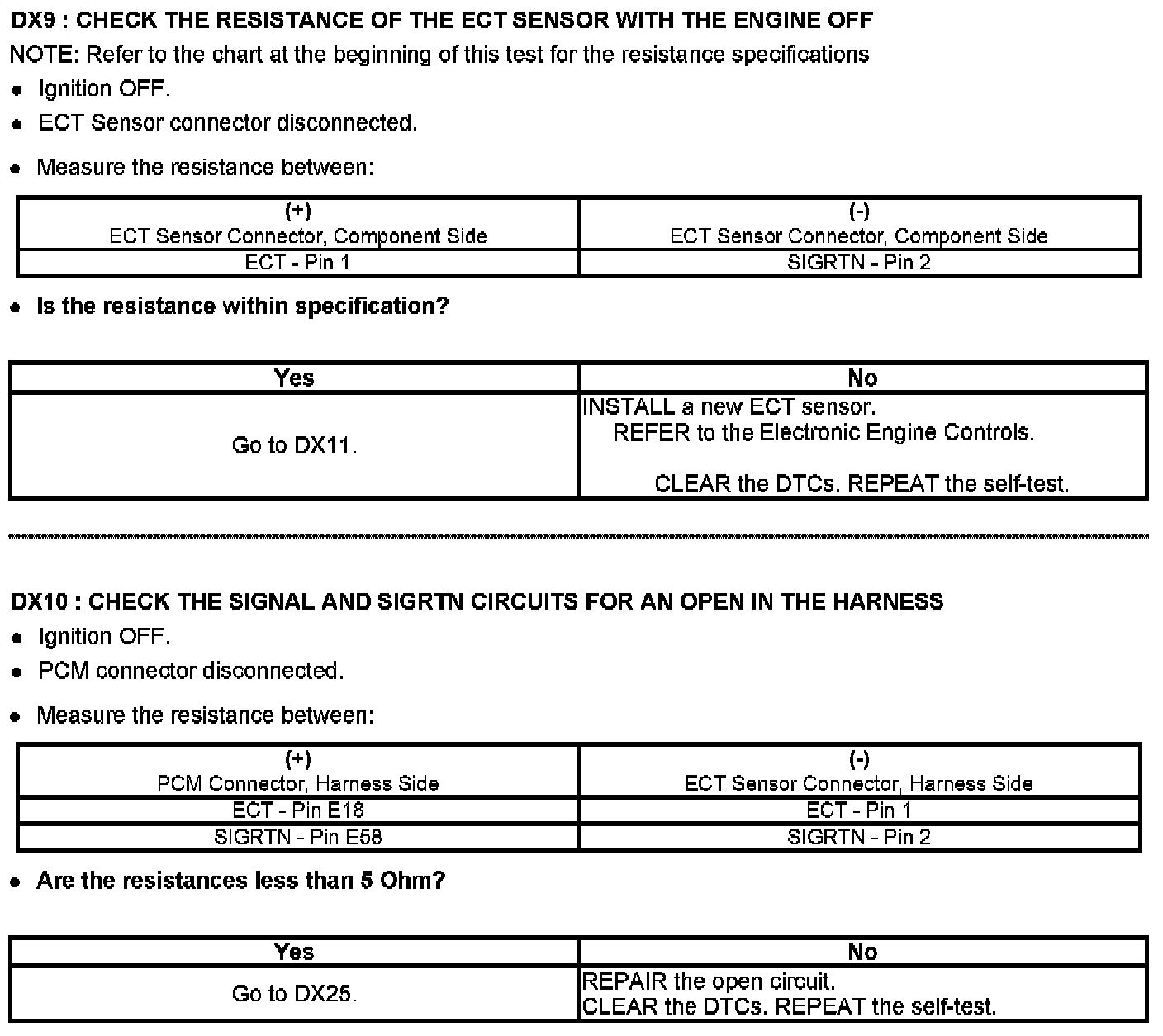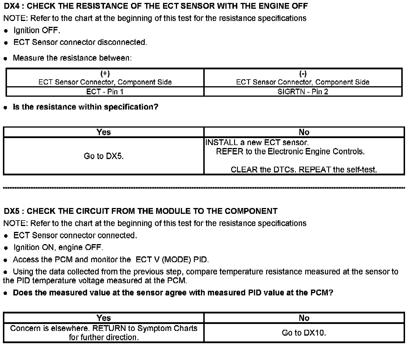 Tests DX: Engine Coolant Temperature (ECT) Sensor