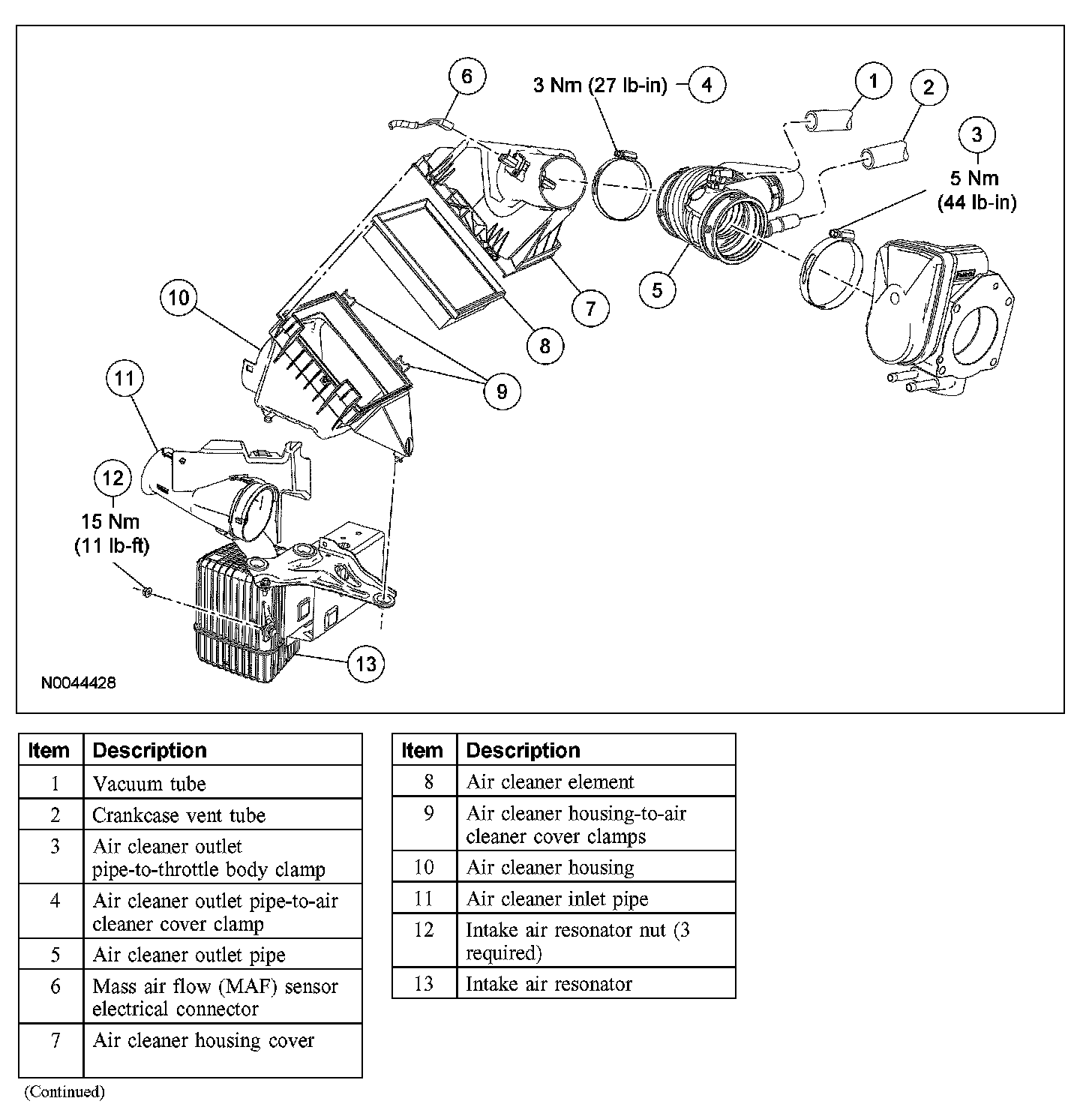 - To install, tighten to 15 Nm (11 lb-ft).