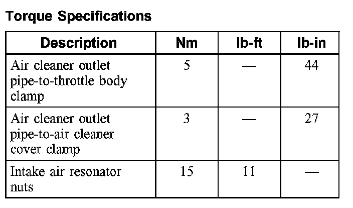 Torque Specifications: