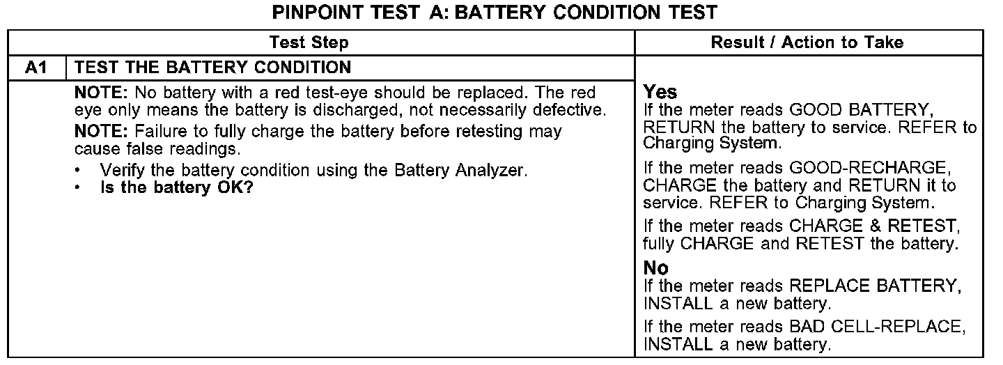 PINPOINT TEST A: BATTERY CONDITION TEST
