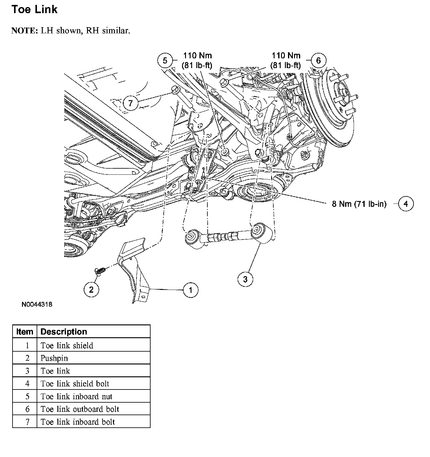 ^ To install, tighten the nut to 110 Nm (81 ft. lbs.) with the suspension at the bushing fastener tightening position.