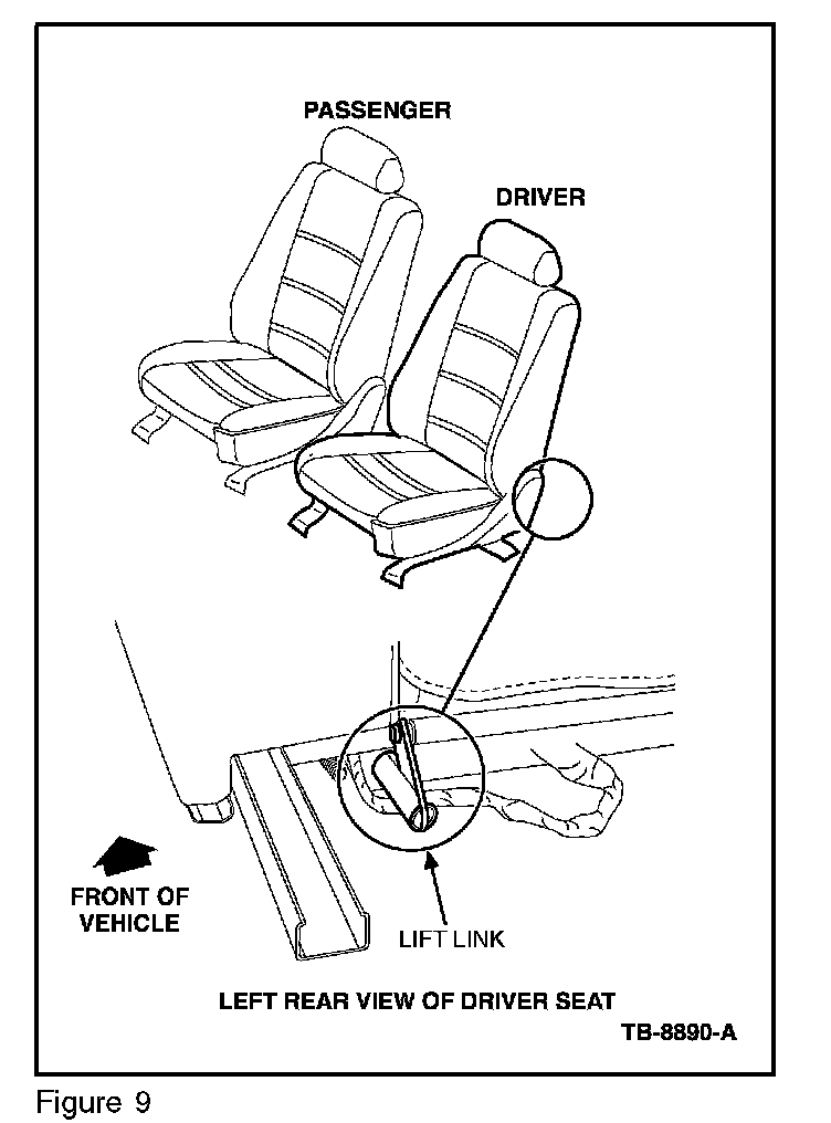 10. Position the driver seat to the UP position, so the bottom of the seat track is exposed.