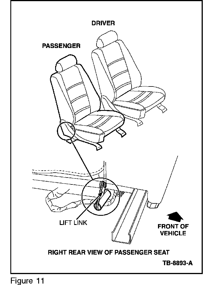 14. Position the passenger seat to the up position, so the bottom of the seat track is exposed.