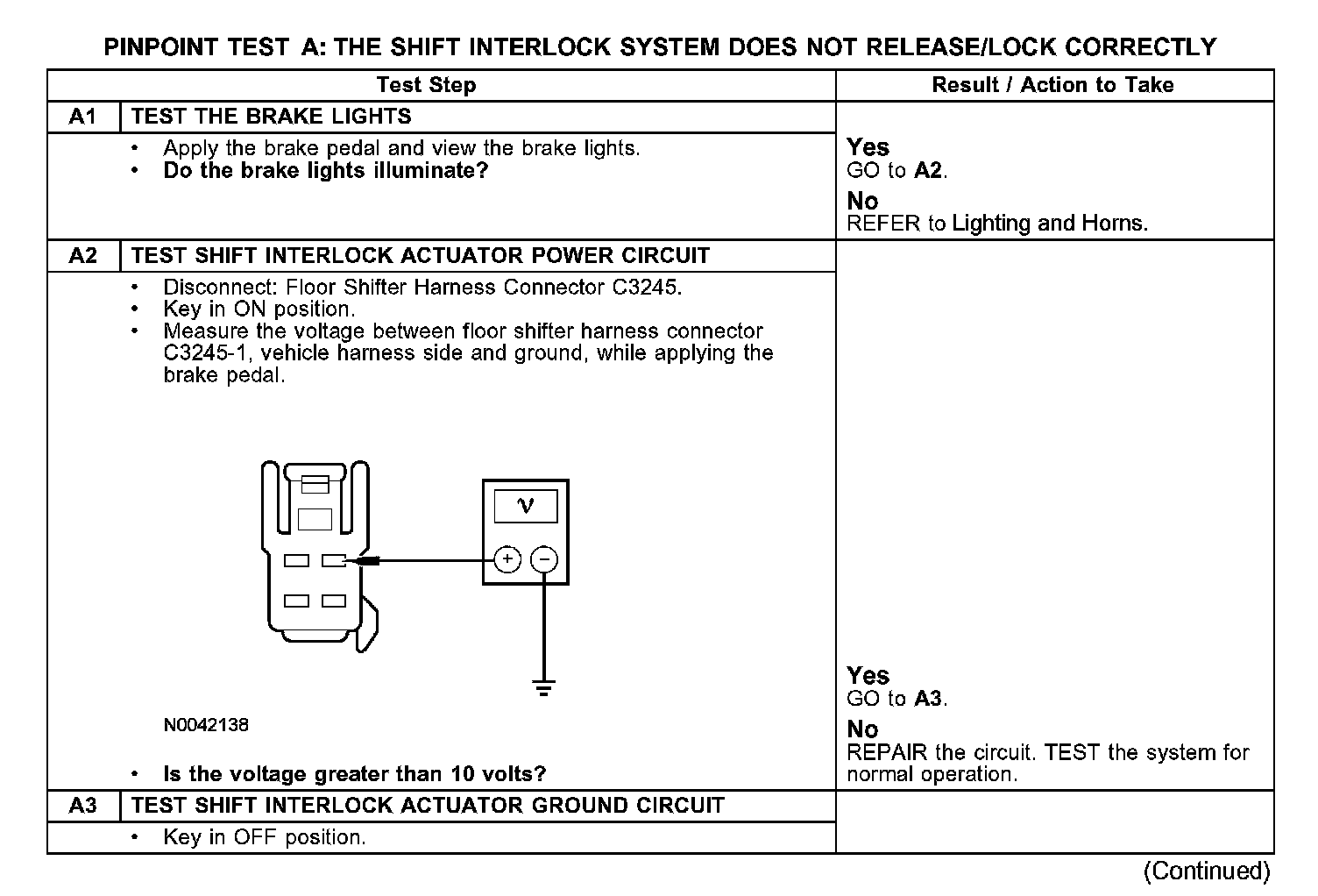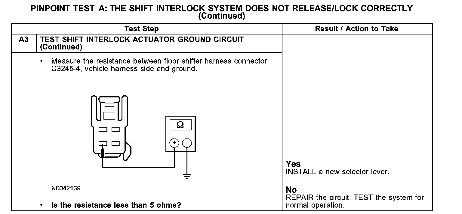 PINPOINT TEST A: THE SHIFT INTERLOCK SYSTEM DOES NOT RELEASE/LOCK CORRECTLY