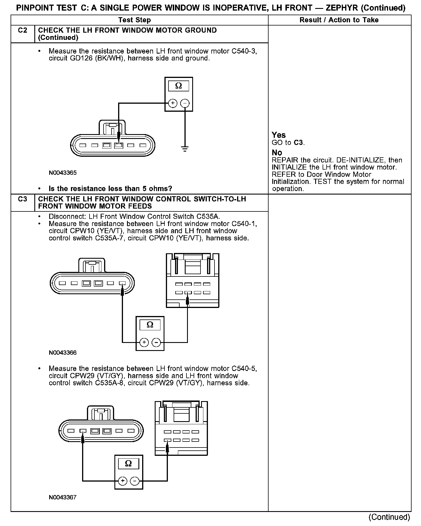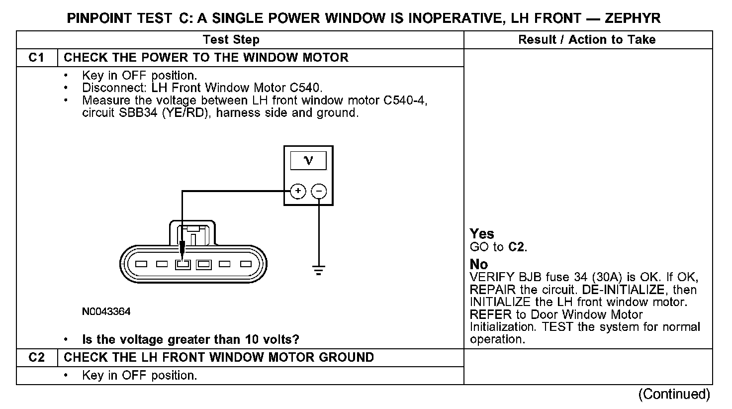 PINPOINT TEST C: A SINGLE POWER WINDOW IS INOPERATIVE, LH FRONTC1-C2: