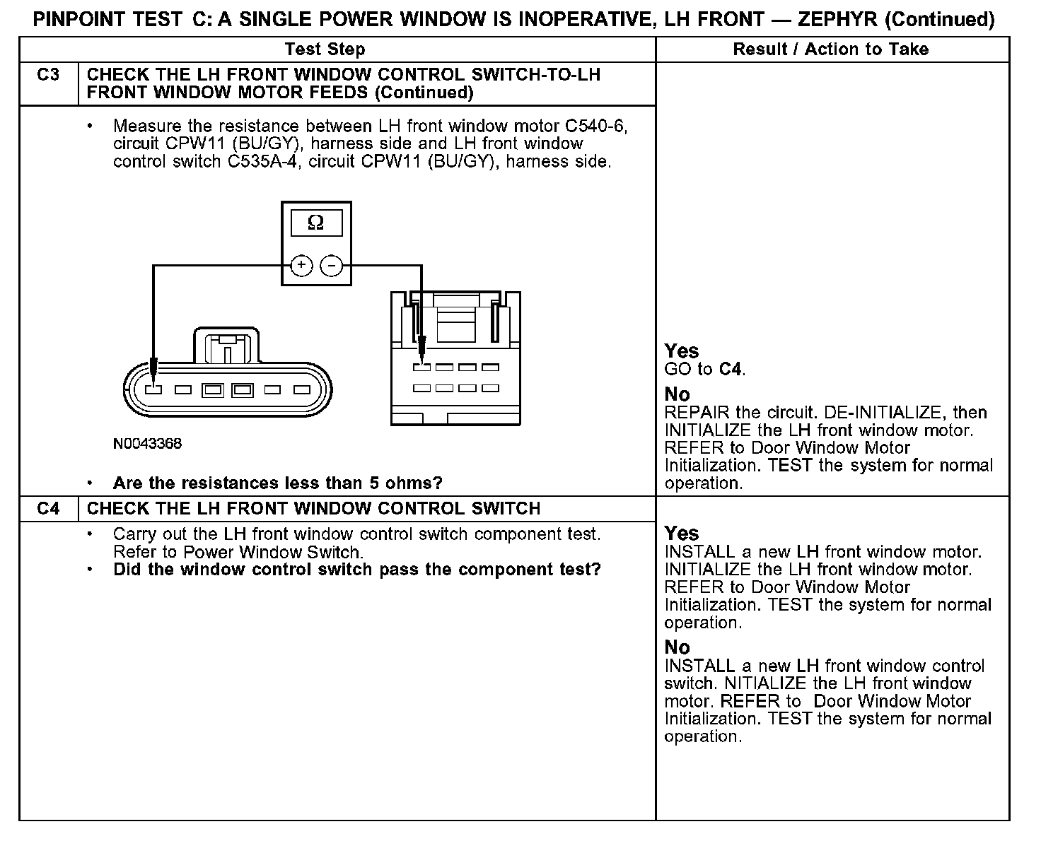 Test C: A Single Power Window Is Inoperative, LH Front