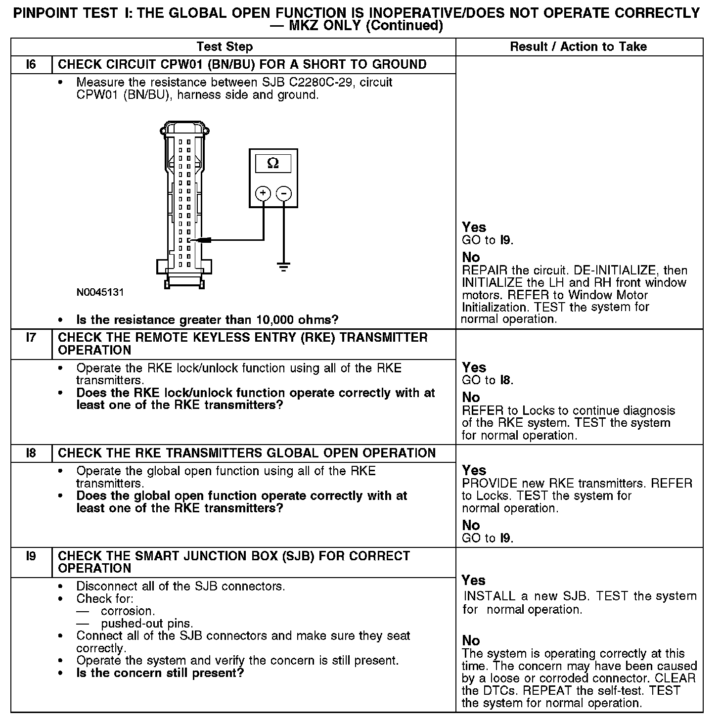 PINPOINT TEST I: THE GLOBAL OPEN FUNCTION IS INOPERATIVE/DOES NOT OPERATE CORRECTLYI1-I3:
