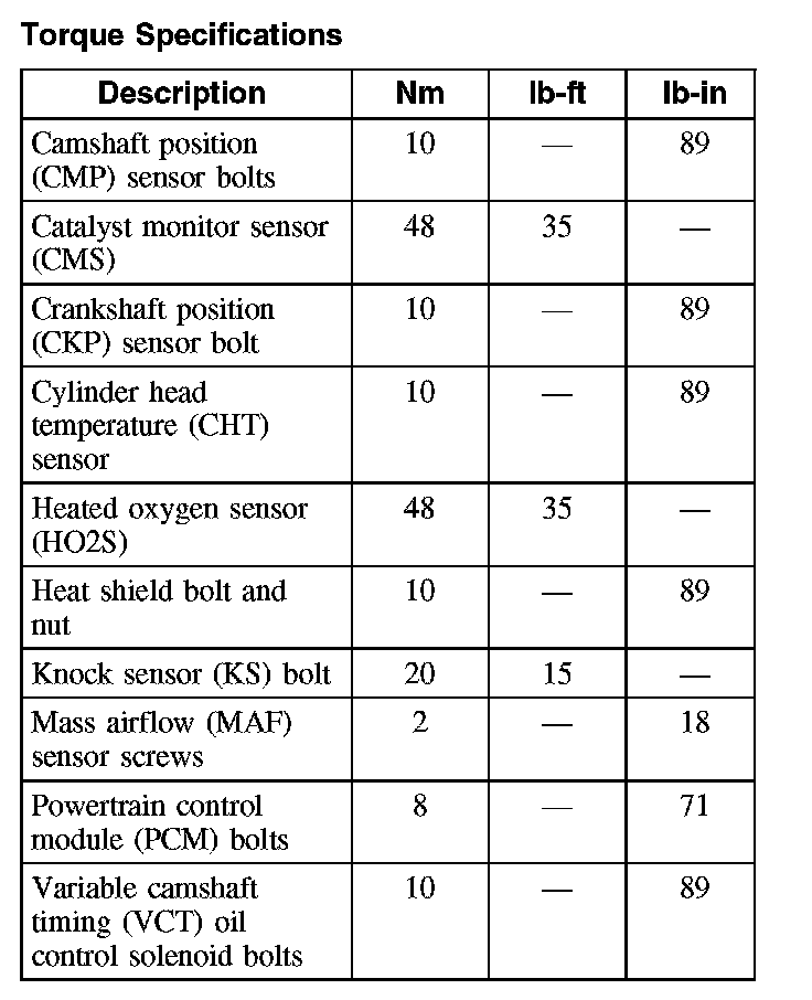 Torque Specifications: