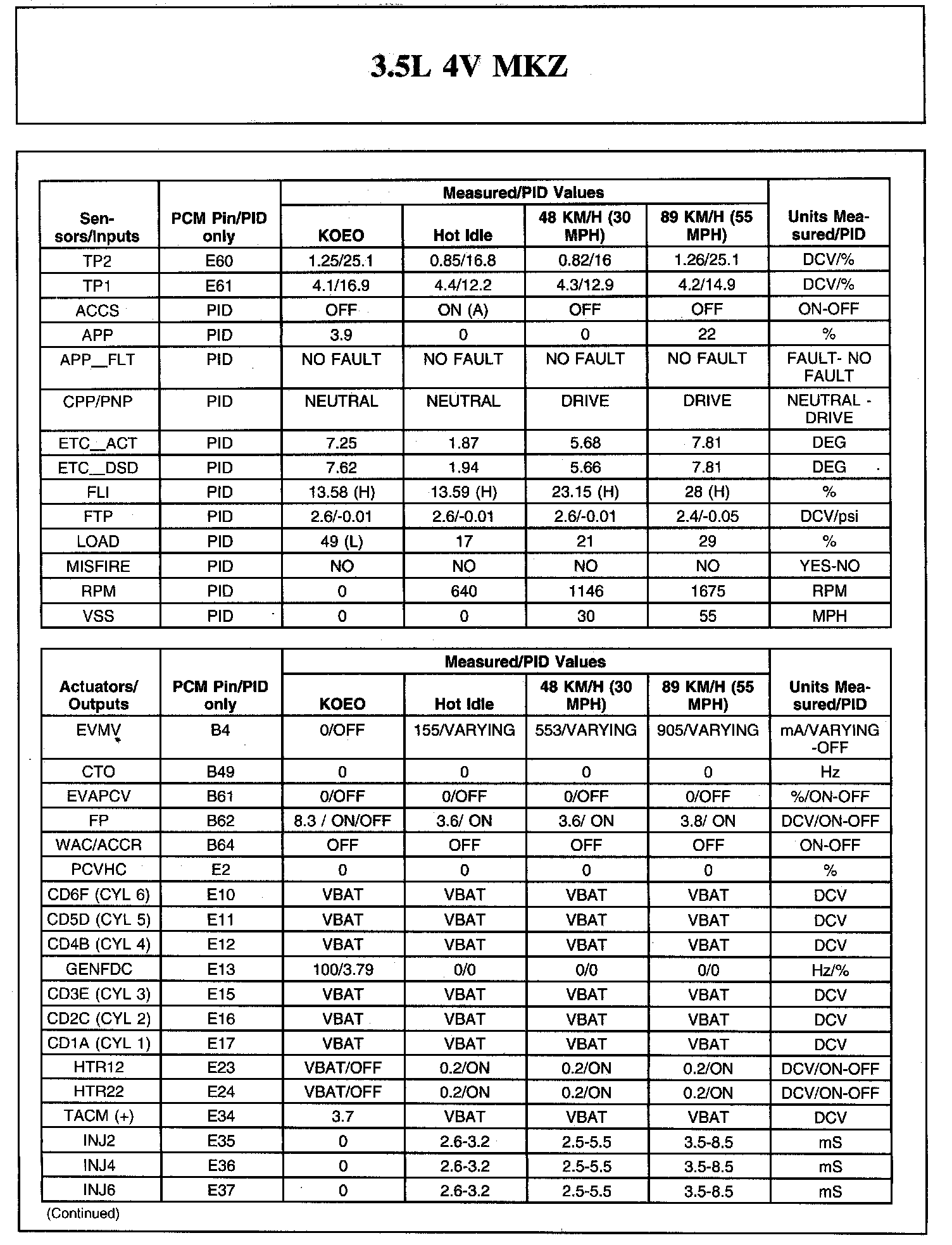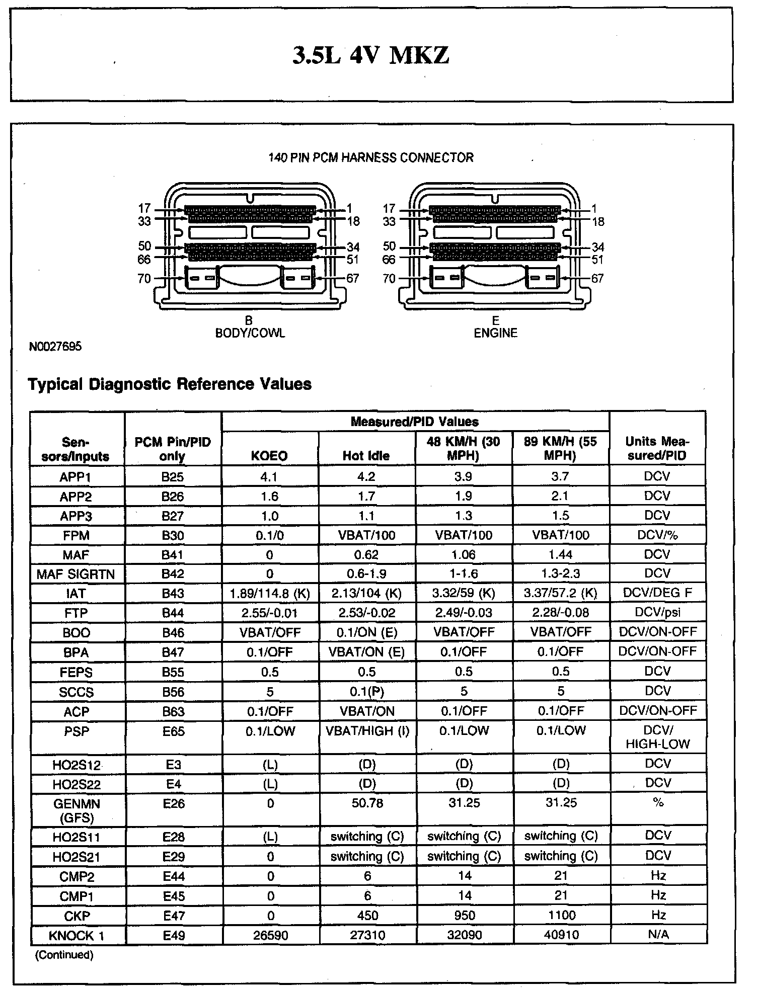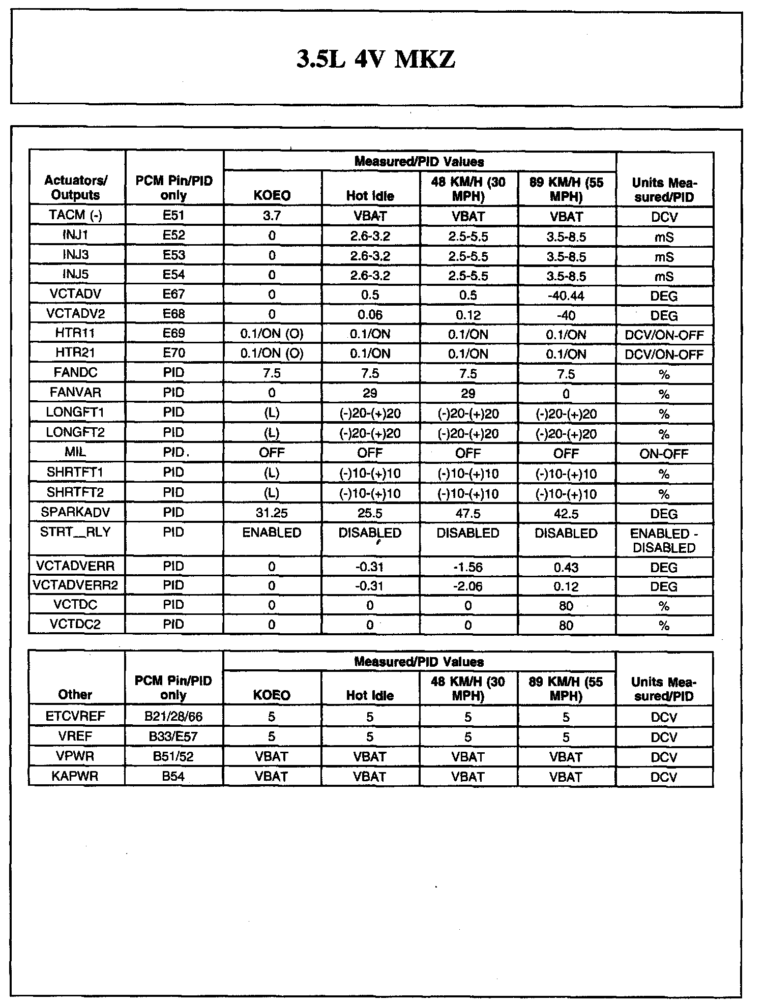 The Typical Diagnostic Reference Value Charts do not display fault parameter identifications (PIDs). These are PIDs which indicate a hard fault with the circuit. They display a value of YES or NO and are PIDs ending with the letter F.