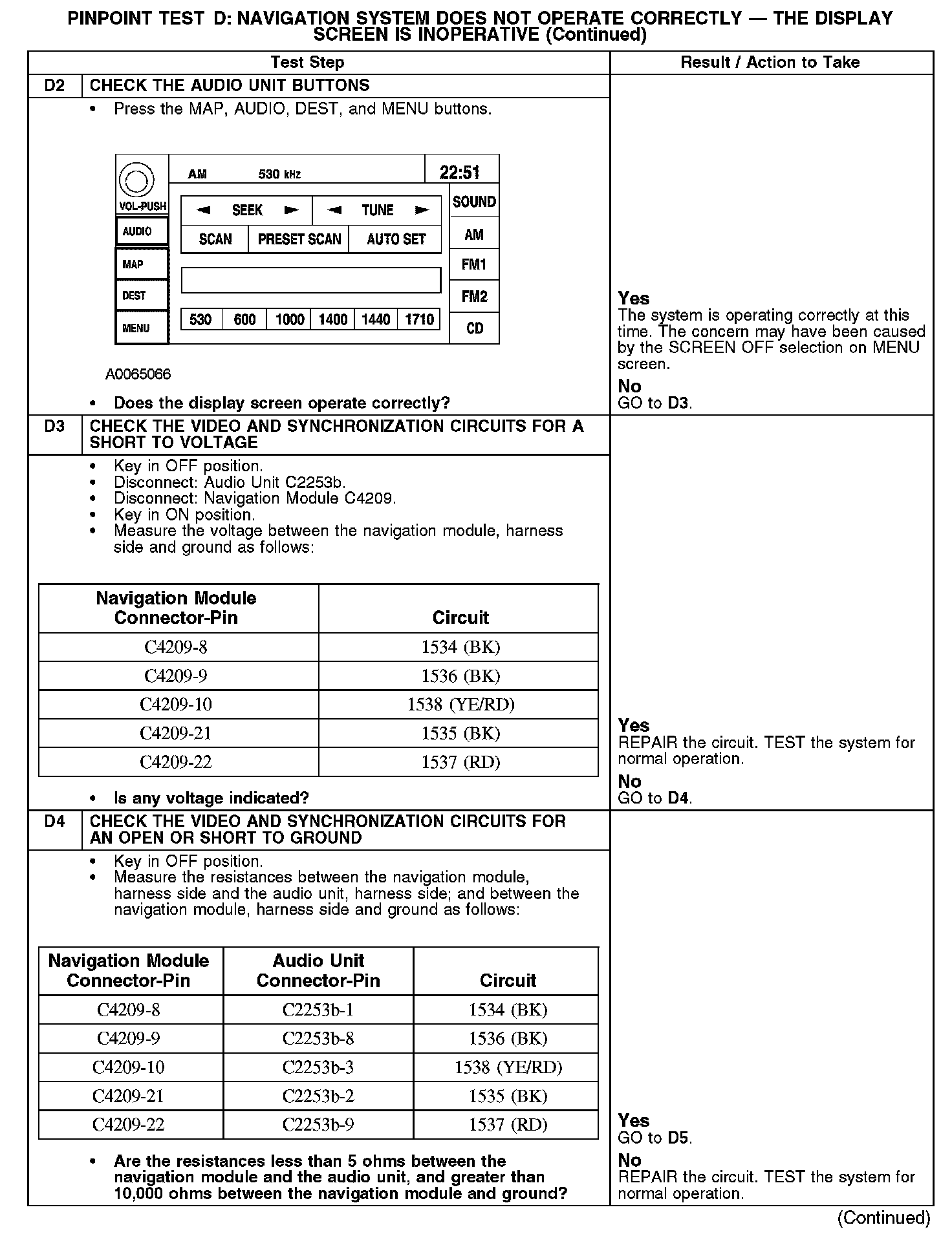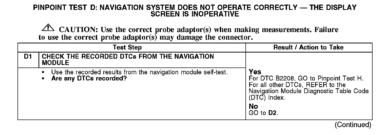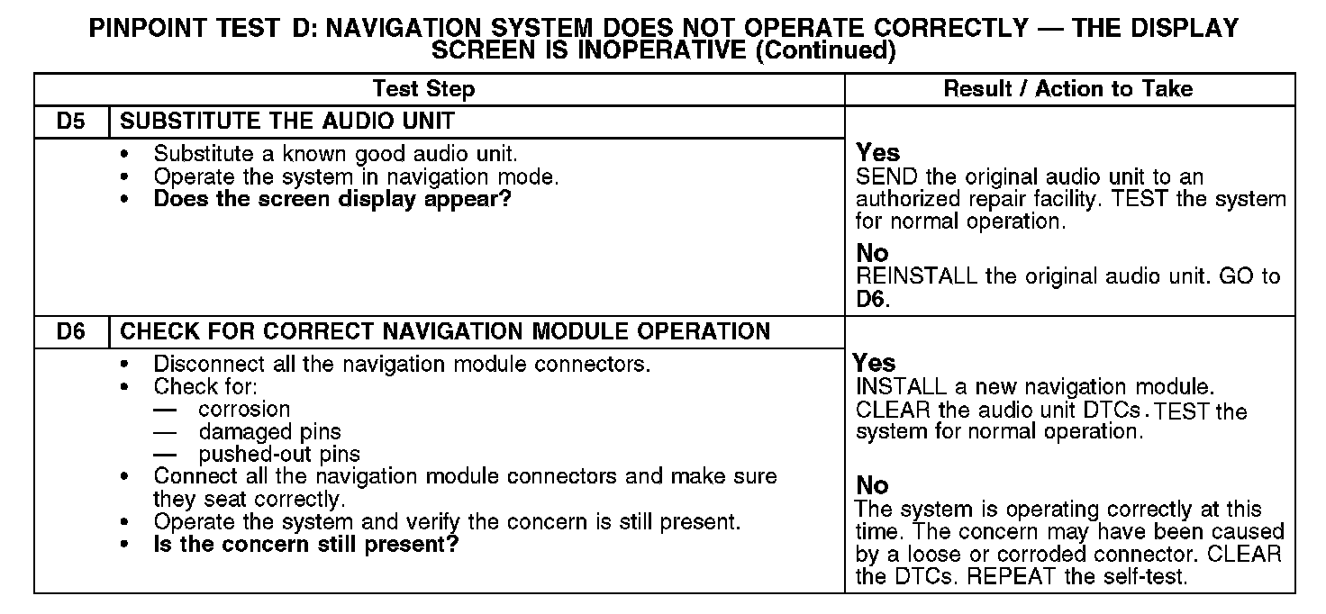 PINPOINT TEST D: NAVIGATION SYSTEM DOES NOT OPERATE CORRECTLY - THE DISPLAY SCREEN IS INOPERATIVED1: