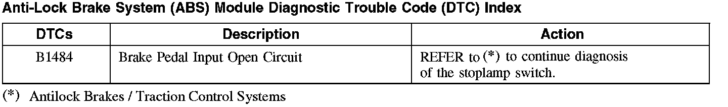 Anti-Lock Brake System (ABS) Module Diagnostic Trouble Code (DTC) Index