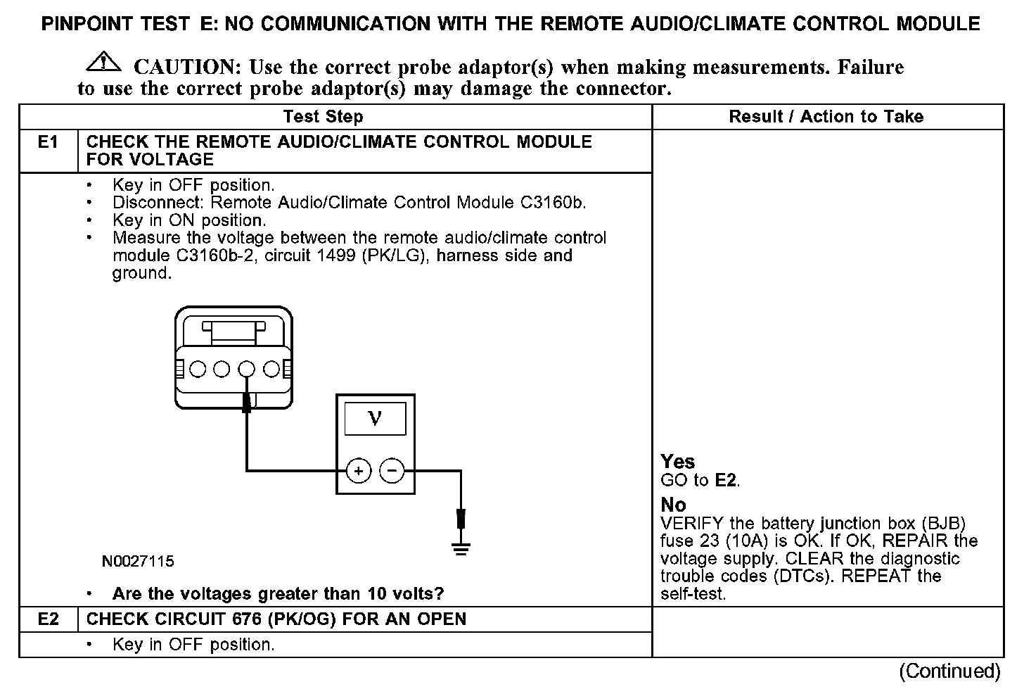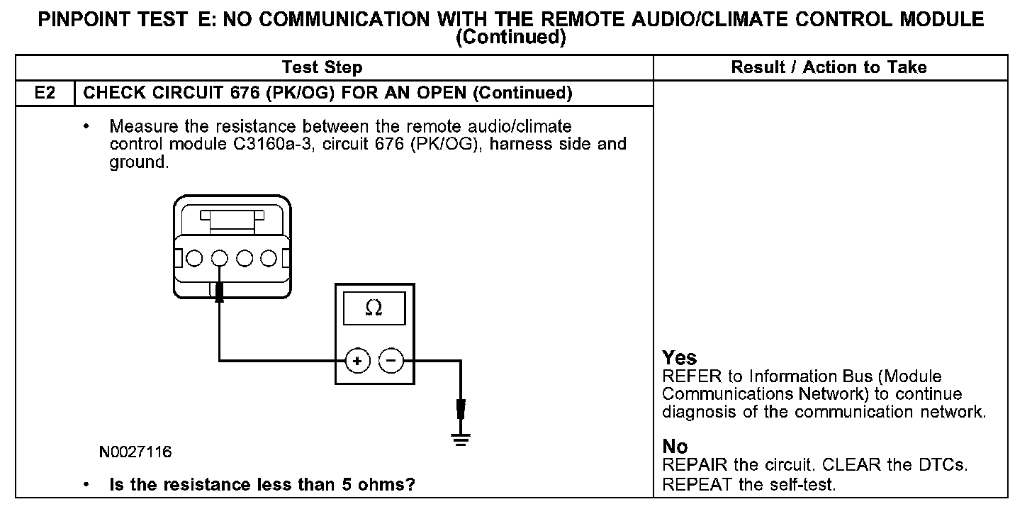 PINPOINT TEST E: NO COMMUNICATION WITH THE REMOTE AUDIO/CLIMATE CONTROL MODULE