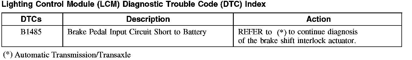 Lighting Control Module (LCM) Diagnostic Trouble Code (DTC) Index