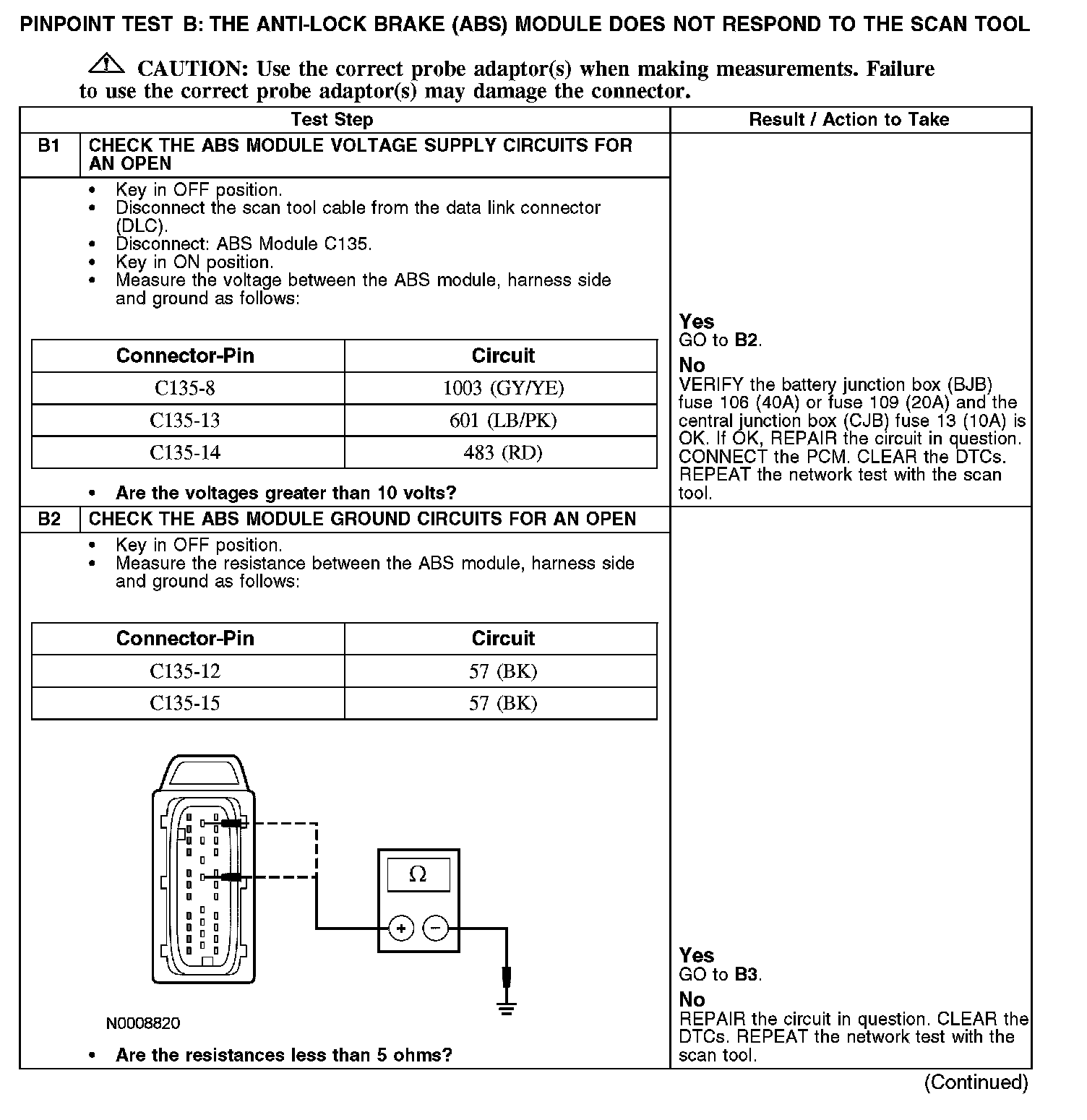 PINPOINT TEST B: THE ANTI-LOCK BRAKE (ABS) MODULE DOES NOT RESPOND TO THE SCAN TOOLB1-B2: