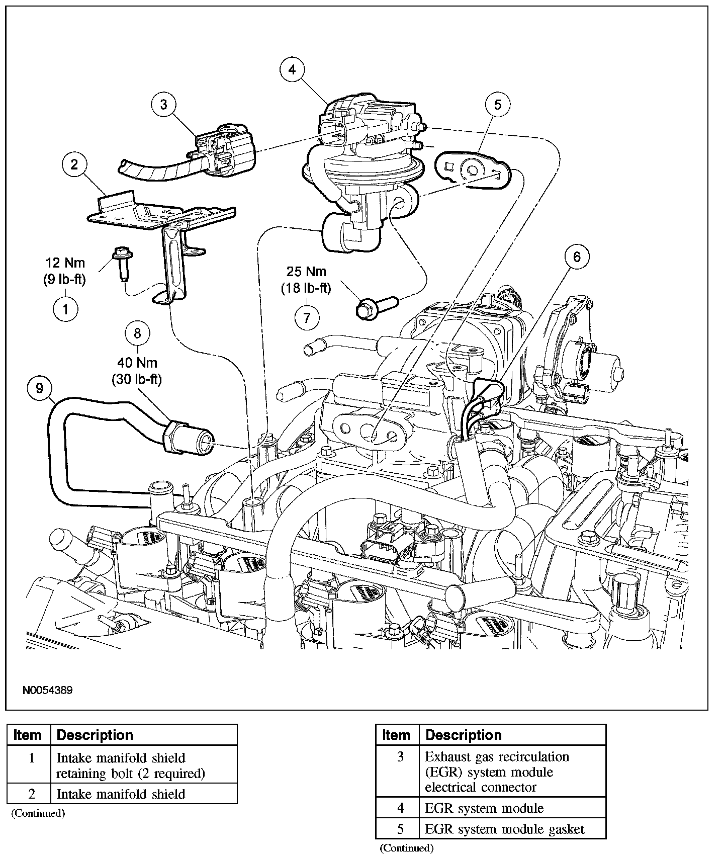 6. CAUTION: Do not use metal scrapers, wire brushes, power abrasive discs or other abrasive means to clean the sealing surfaces. These tools cause scratches and gouges that make leak paths. Use a plastic scraping tool to remove all traces of the EGR system module gasket.