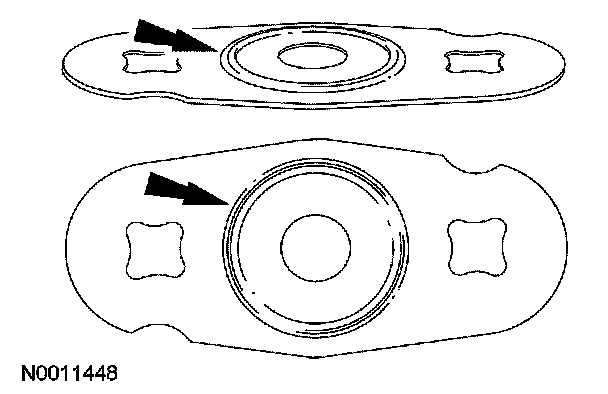 - Install a new EGR system module gasket with the side that has the raised circle facing the intake manifold.