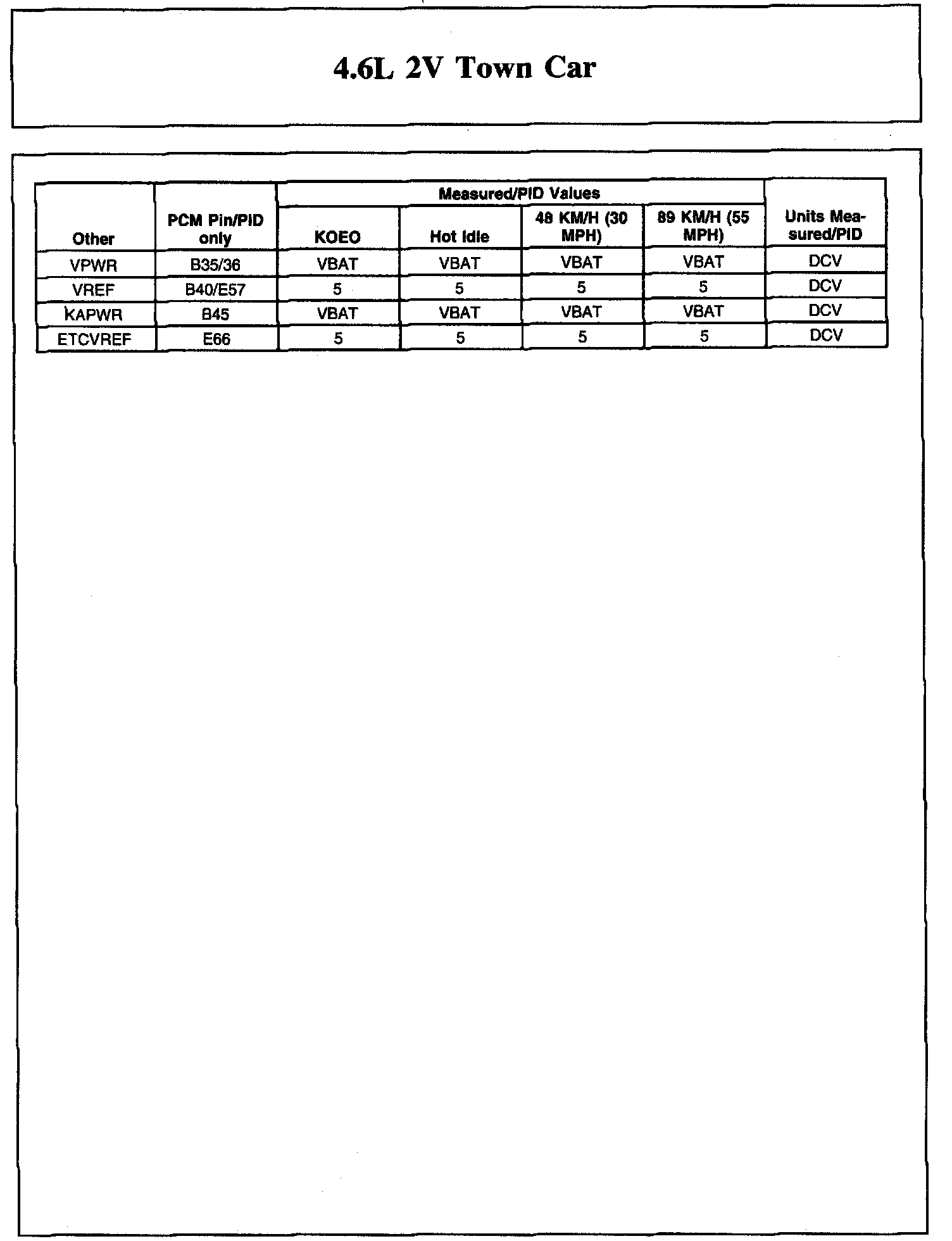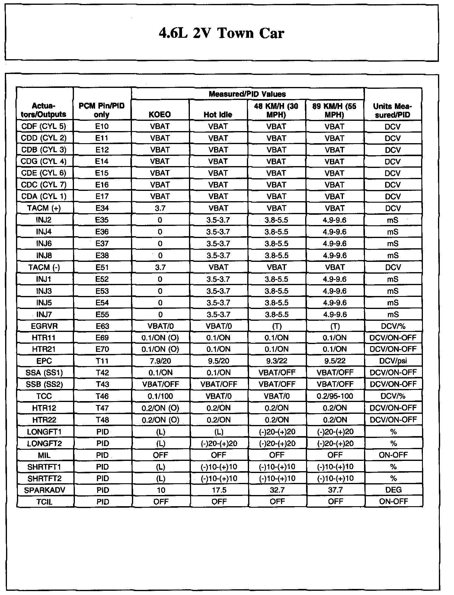 The Typical Diagnostic Reference Value Charts do not display fault parameter identifications (PIDs). These are PIDs which indicate a hard fault with the circuit. They display a value of YES or NO and are PIDs ending with the letter F.