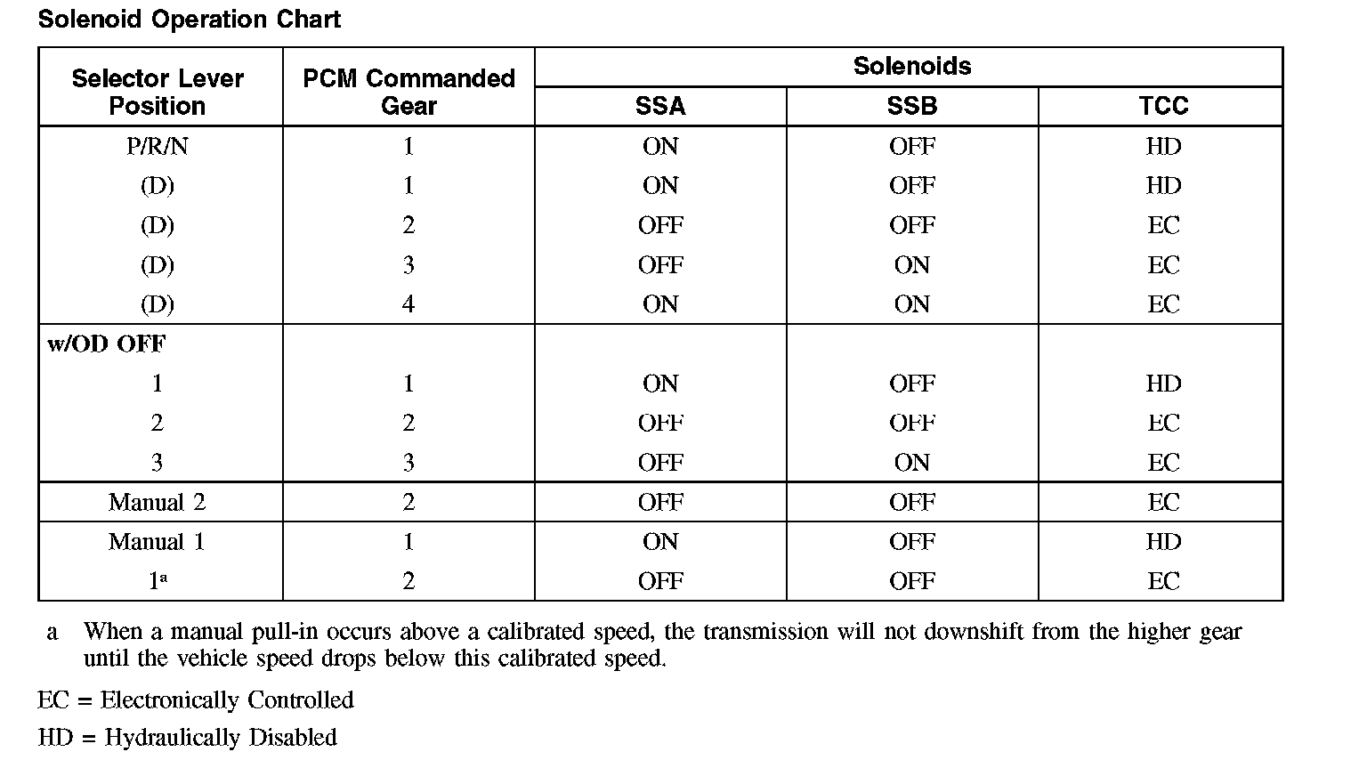 Solenoid Operation Chart: