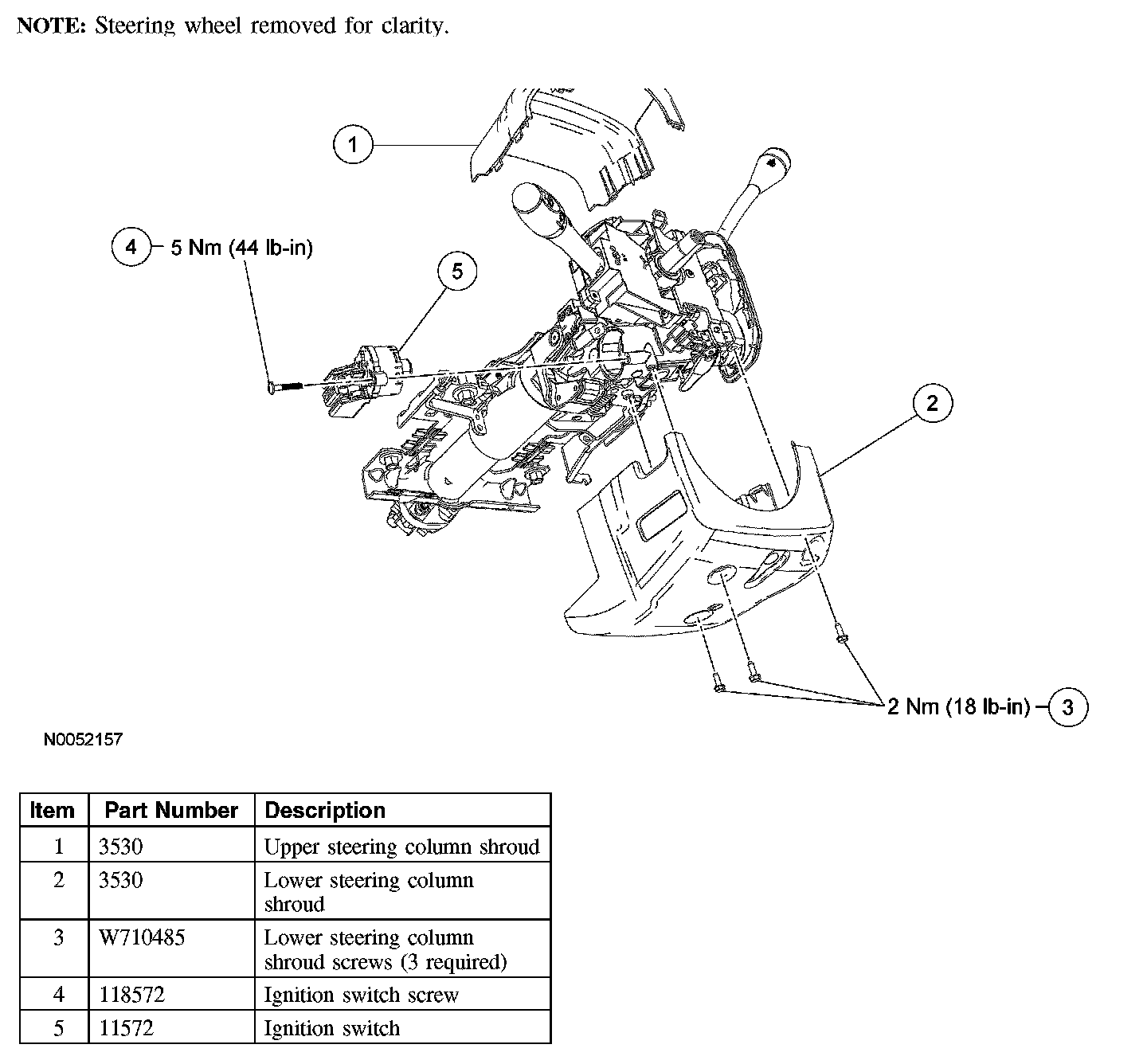 Remove the 3 screws and the upper and lower steering column shrouds.
