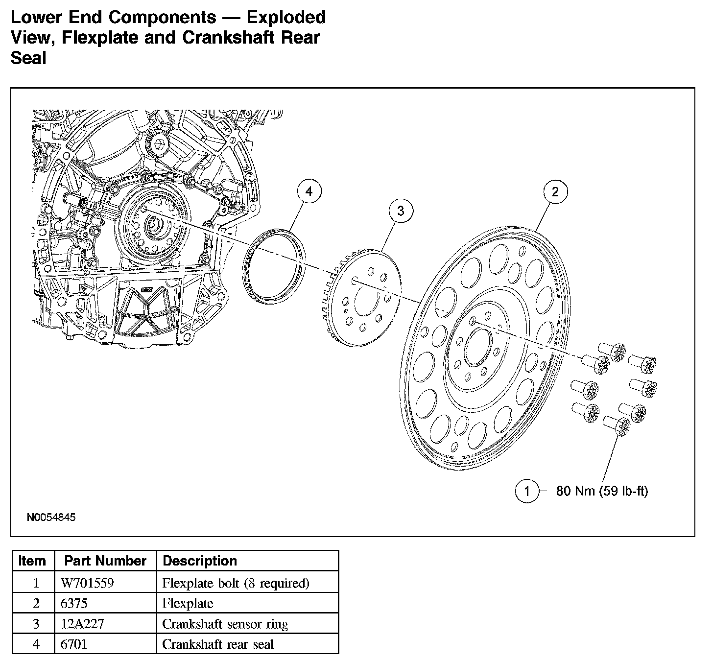 Lower End Components - Exploded View, Flexplate and Crankshaft Rear Seal