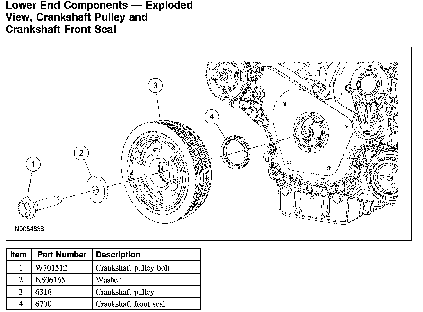 Lower End Components - Exploded View, Crankshaft Pulley and Crankshaft Front Seal