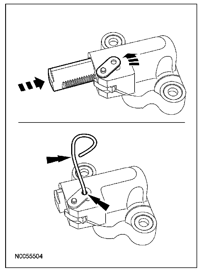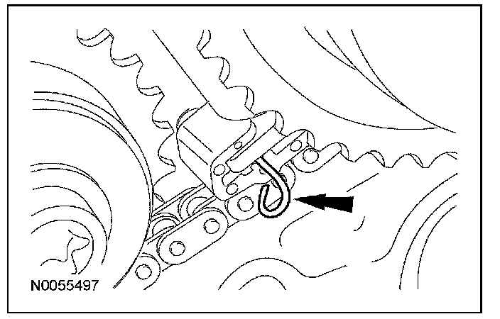 6. Remove the lockpin from the RH secondary timing chain tensioner.