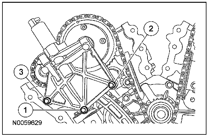 Install the LH VCT housing and the 3 bolts.