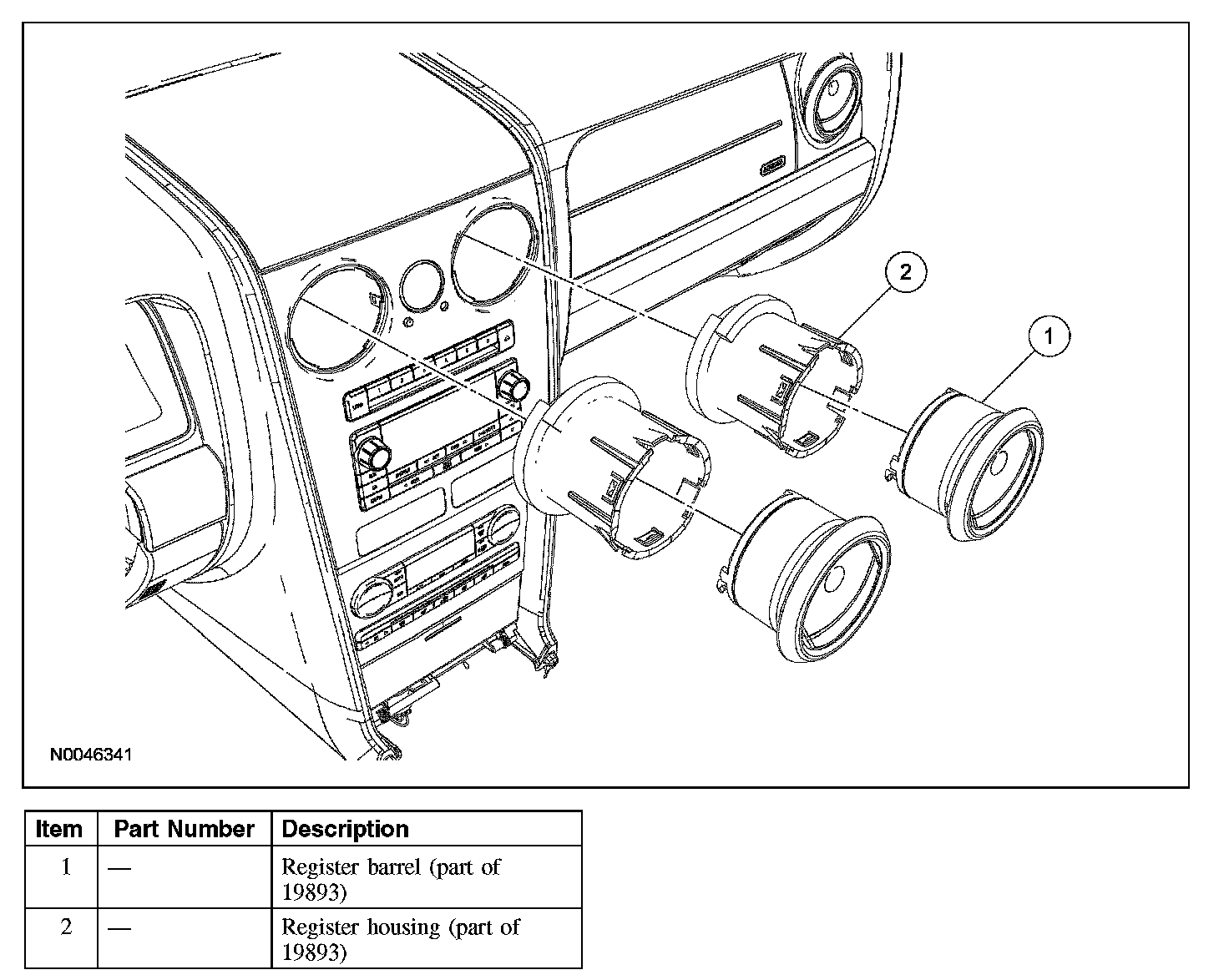 1. CAUTION: To avoid damage to the instrument panel registers, rotate either left or right and pull straight out. Do not wiggle the register from side to side to free it.