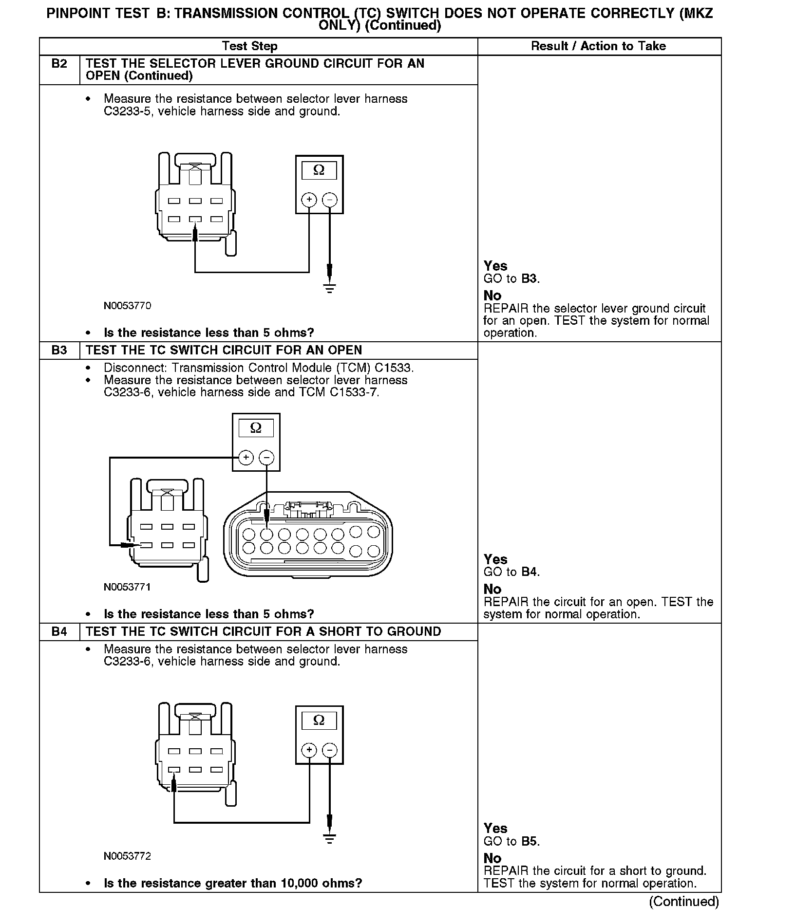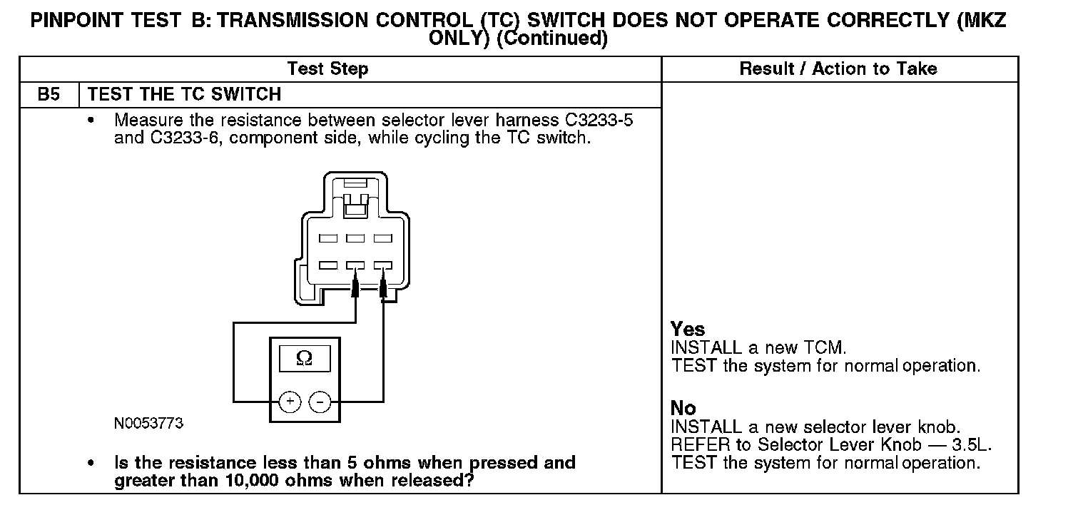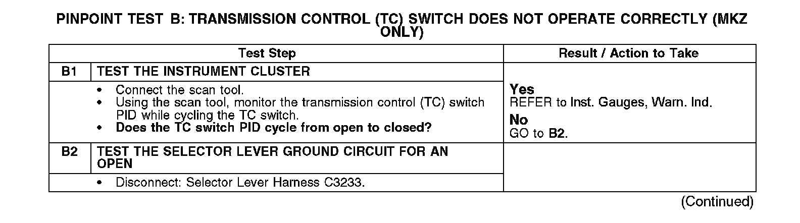 PINPOINT TEST B: TRANSMISSION CONTROL (TC) SWITCH DOES NOT OPERATE CORRECTLY (MKZ ONLY)