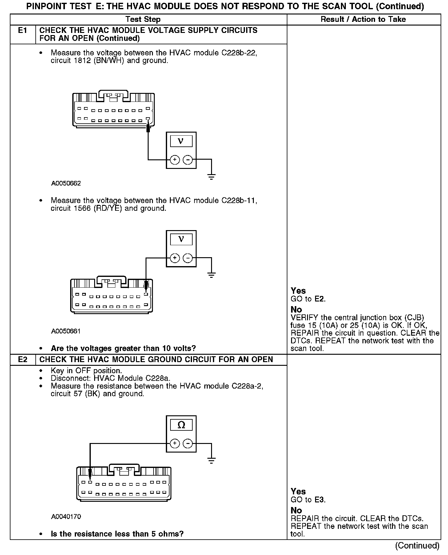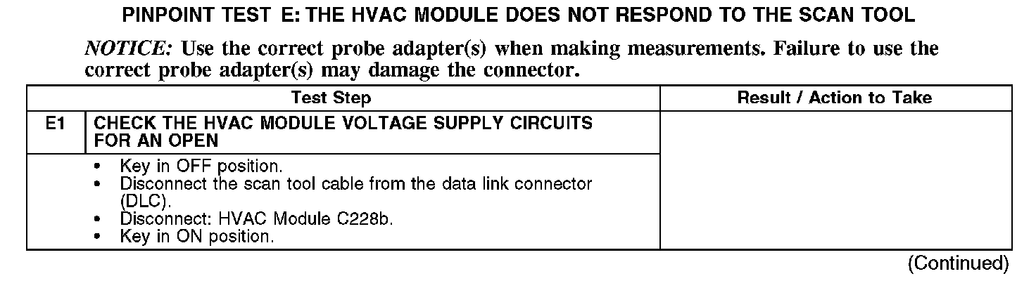 PINPOINT TEST E: THE HVAC MODULE DOES NOT RESPOND TO THE SCAN TOOLNormal Operation