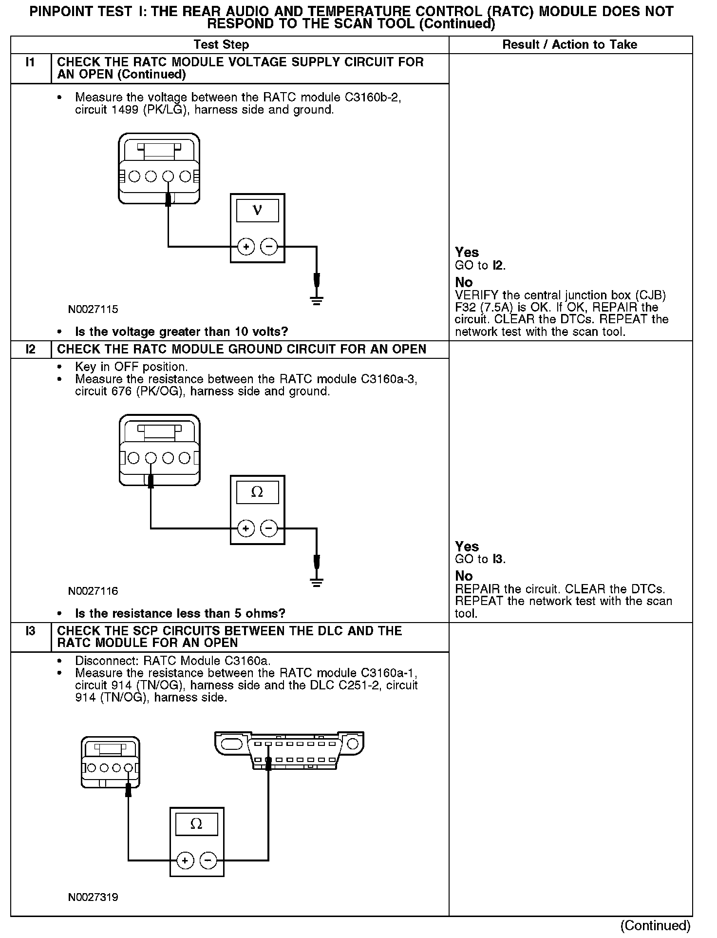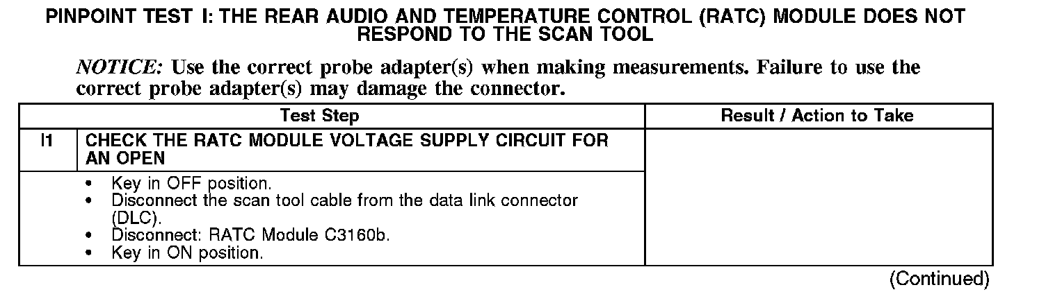 PINPOINT TEST I: THE REAR AUDIO AND TEMPERATURE CONTROL (RATC) MODULE DOES NOT RESPOND TO THE SCAN TOOLNormal Operation