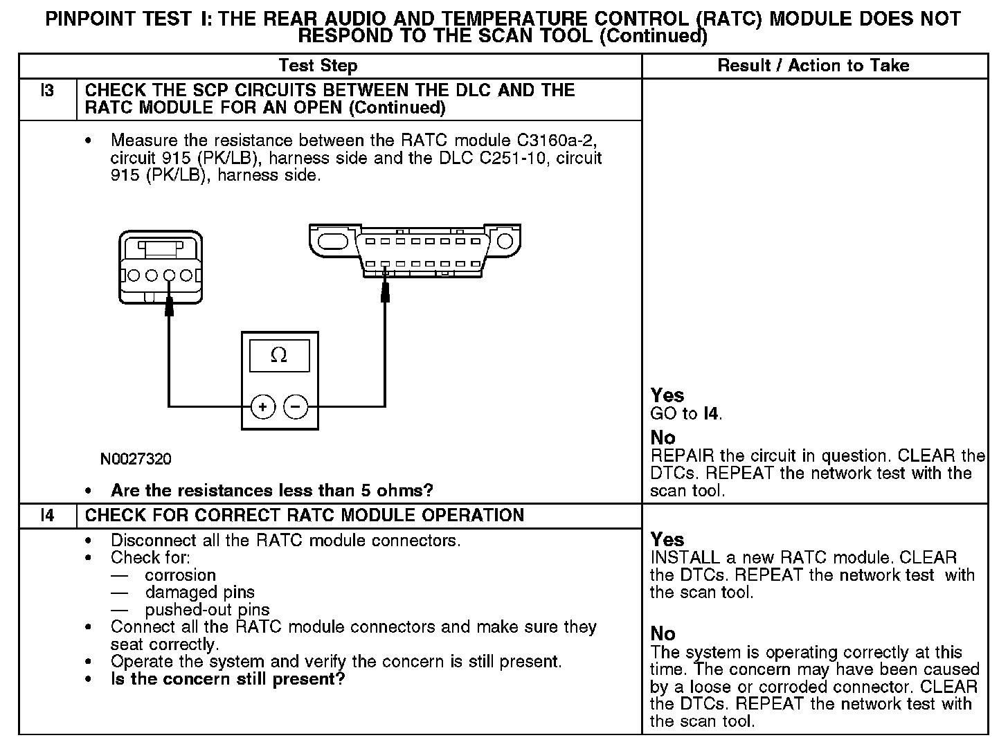 Test I: The Rear Audio and Temperature Control (RATC) Module Does Not Respond To The Scan Tool