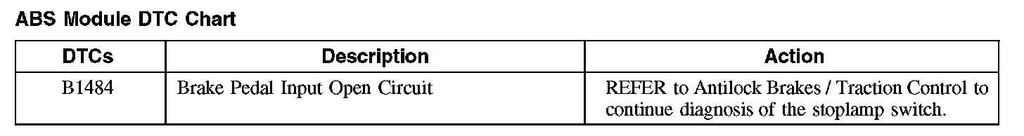 ABS Module DTC Chart