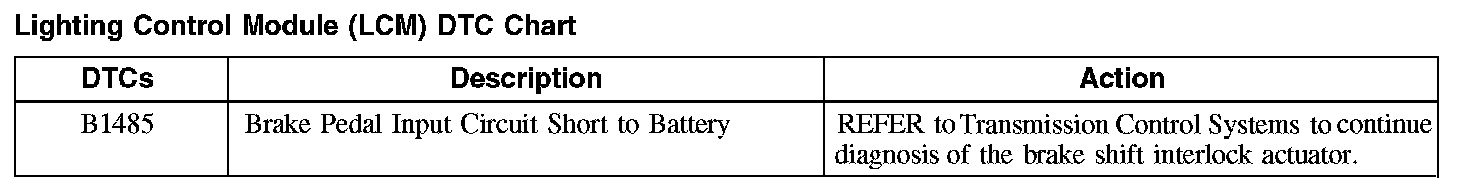 Lighting Control Module (LCM) DTC Chart