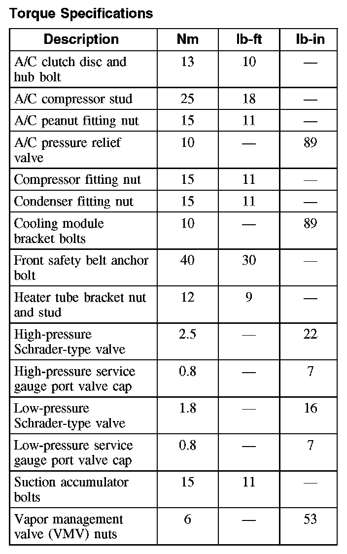 Torque Specifications: