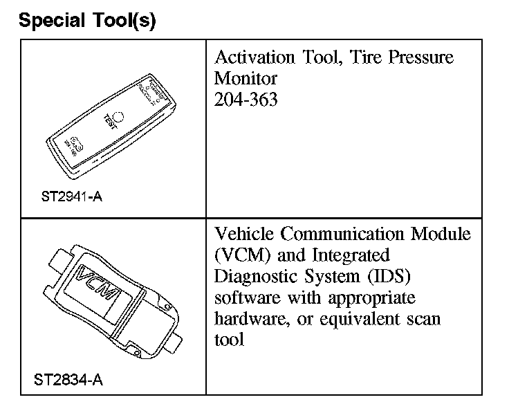 Tire Pressure Monitoring System (TPMS) Sensor TrainingSpecial Tool(s)