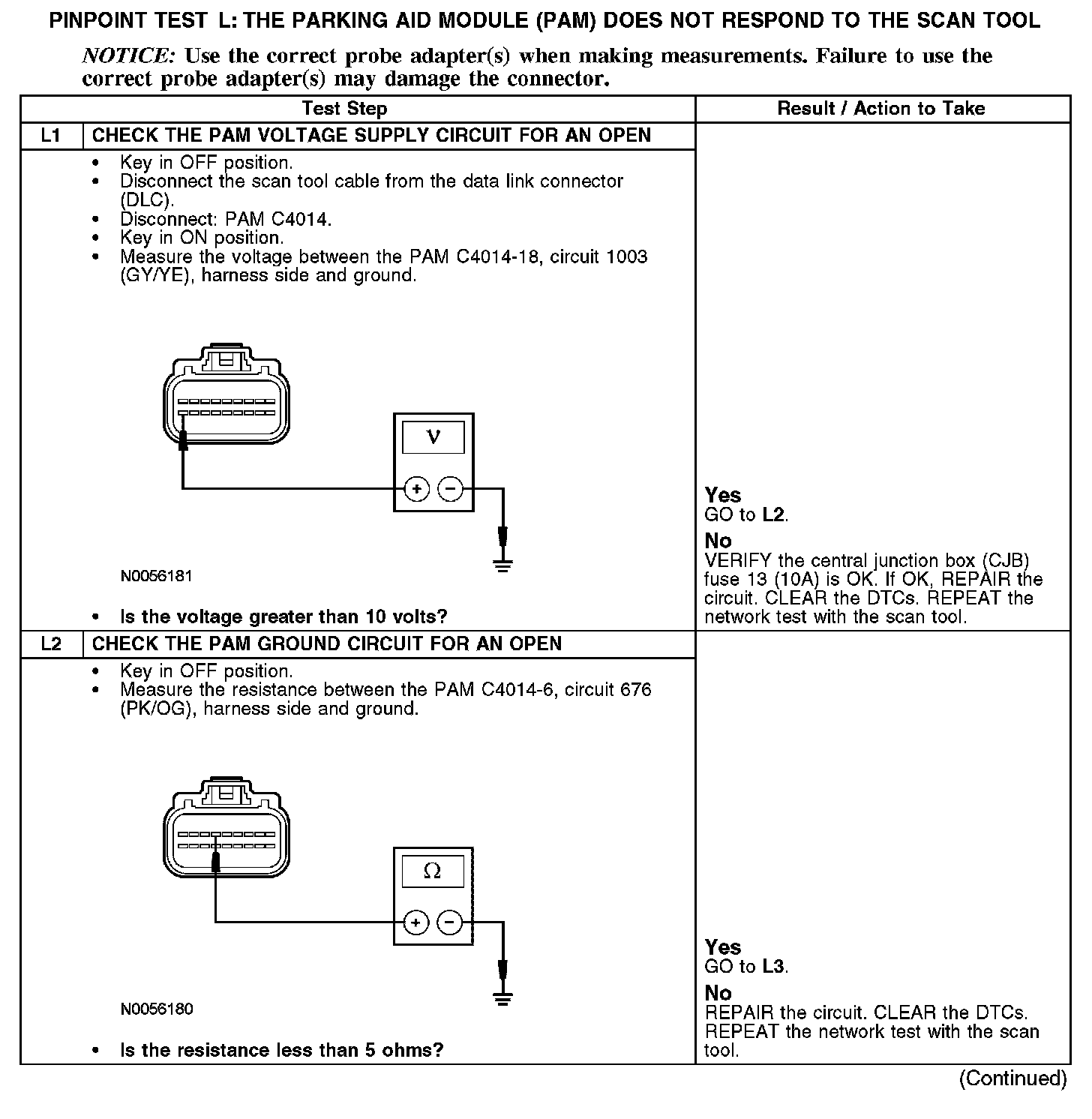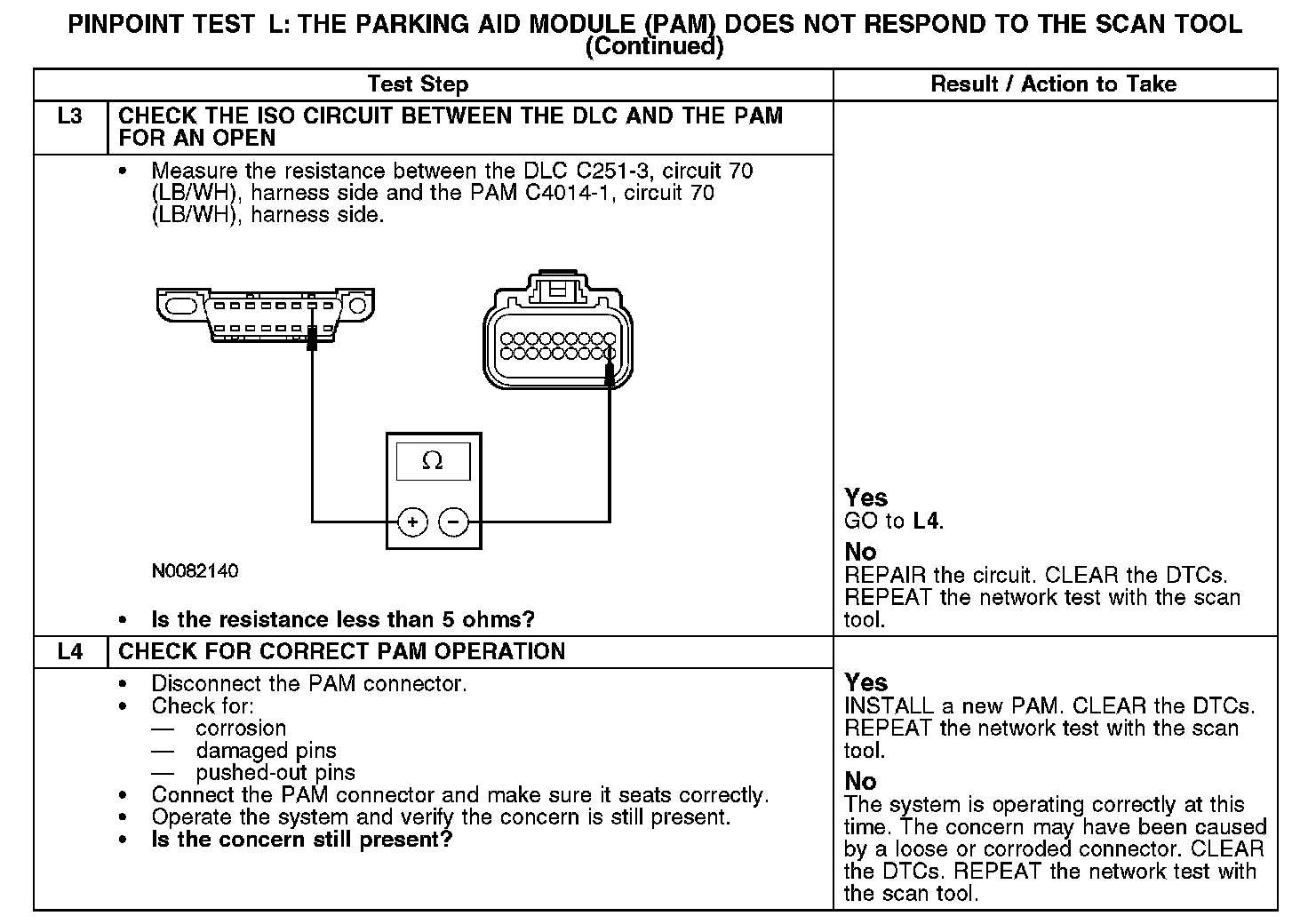 Test L: The Parking Aid Module (PAM) Does Not Respond To The Scan Tool